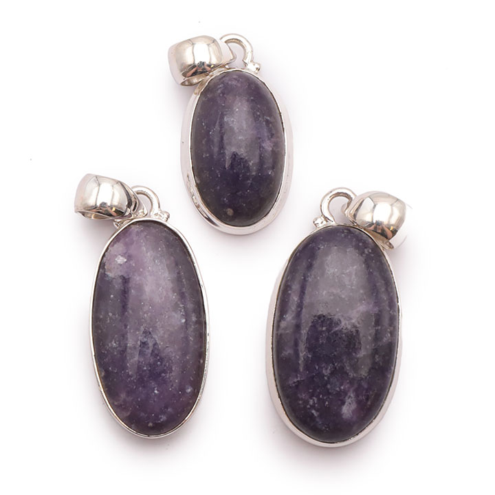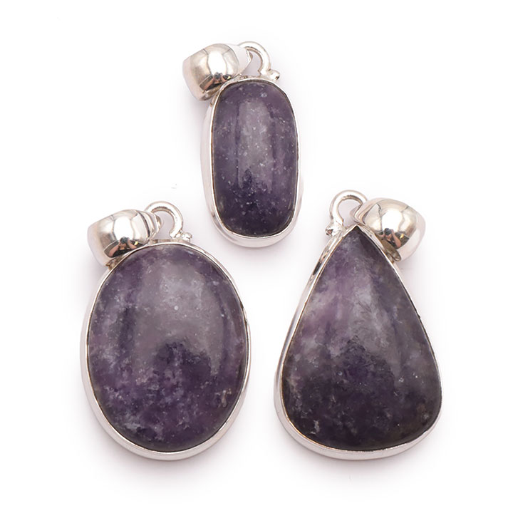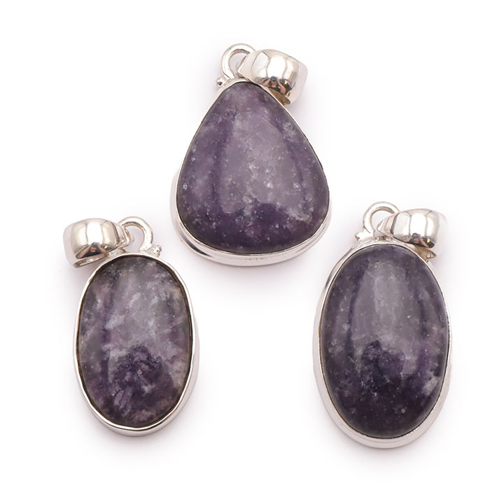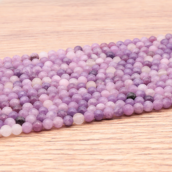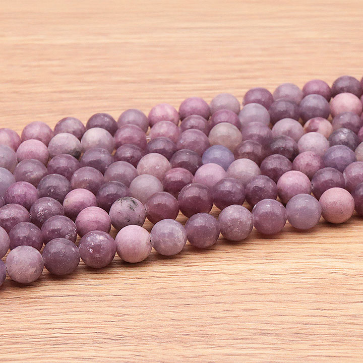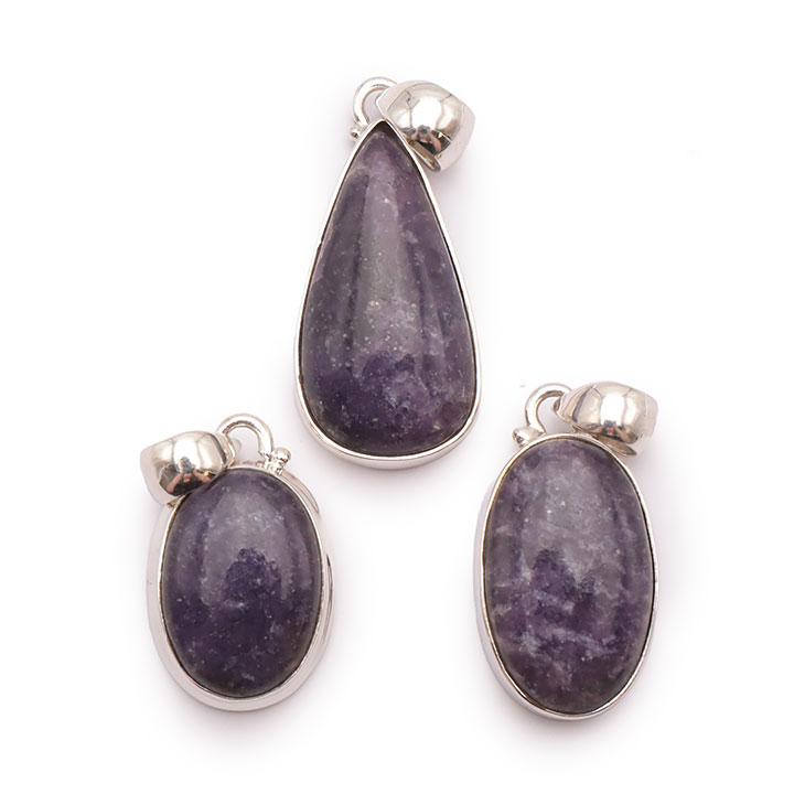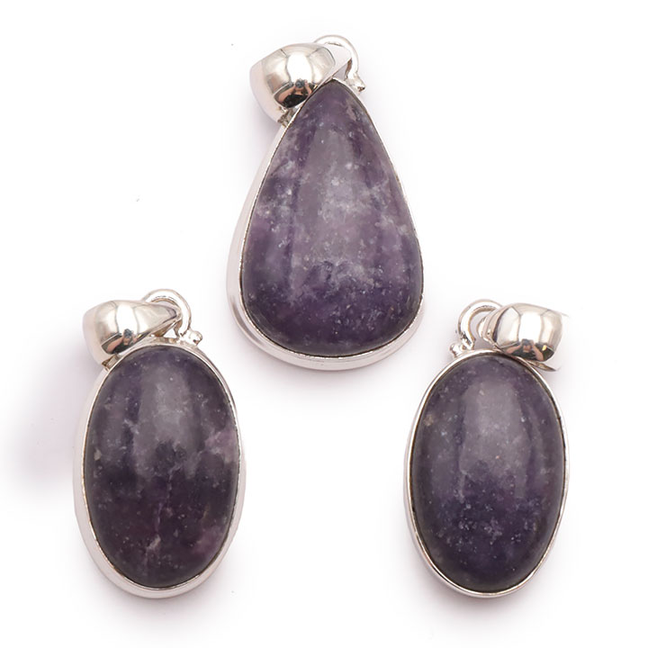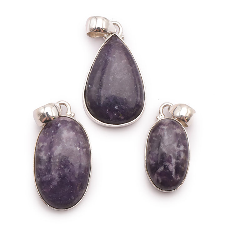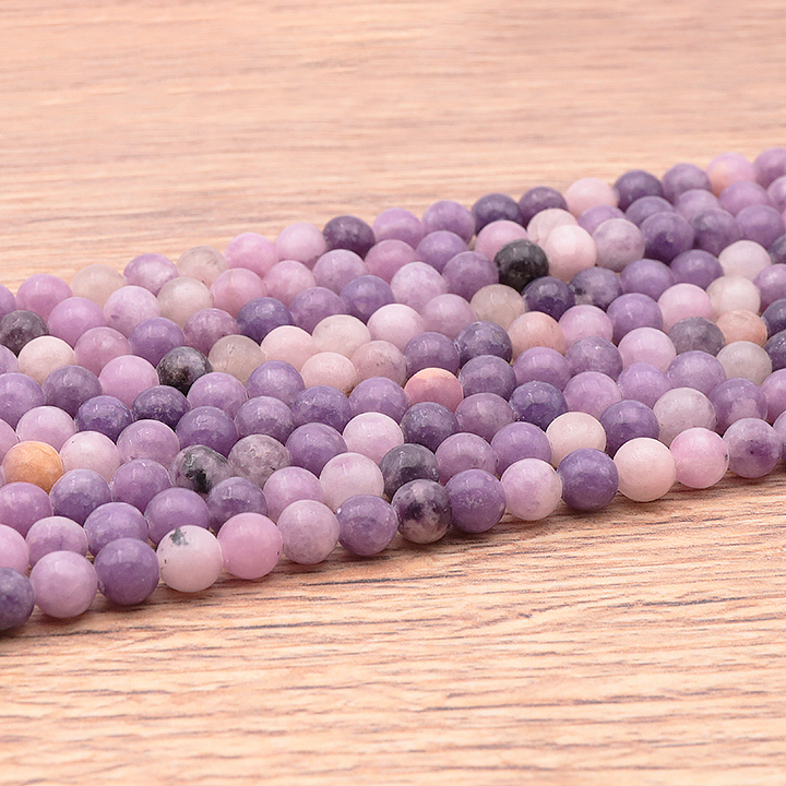 Braccialetti e pendenti in lepidolite. Ciottoli e pietre forate in lepidolite.