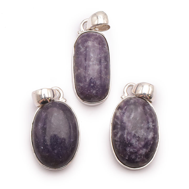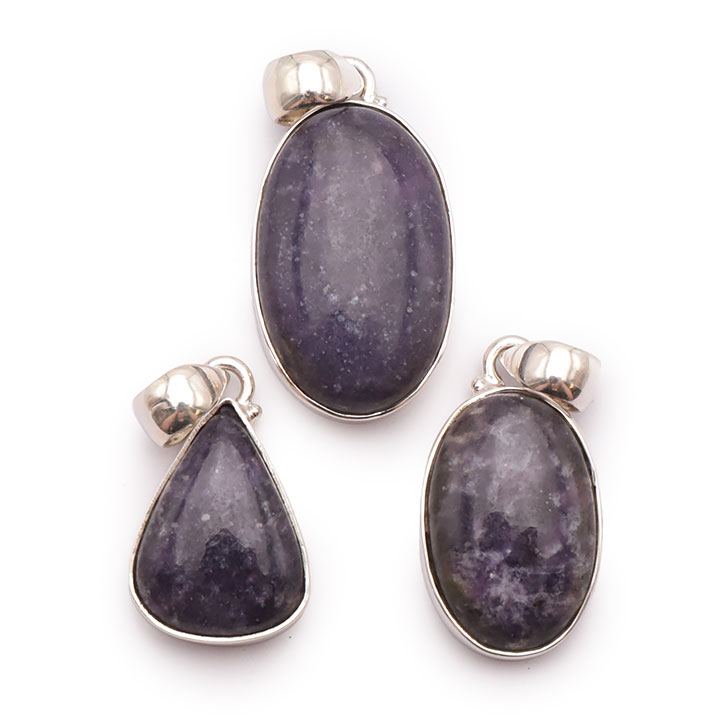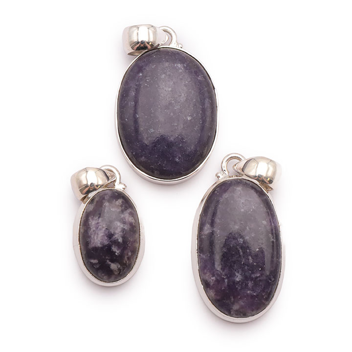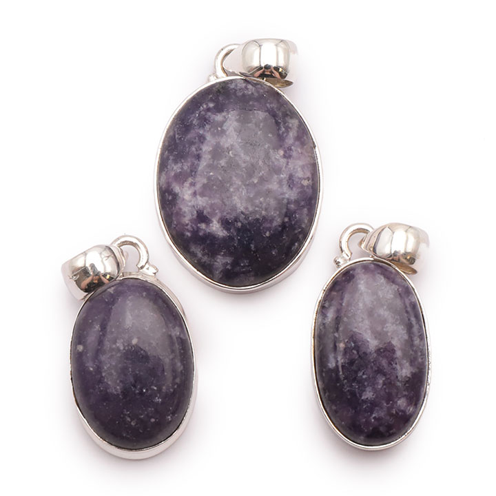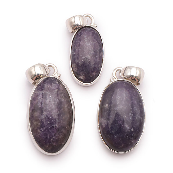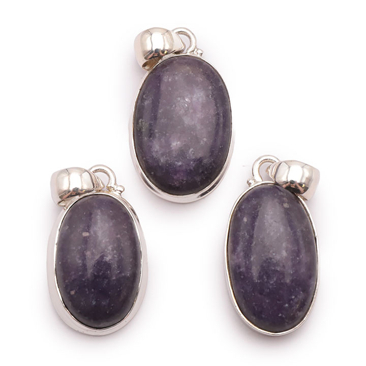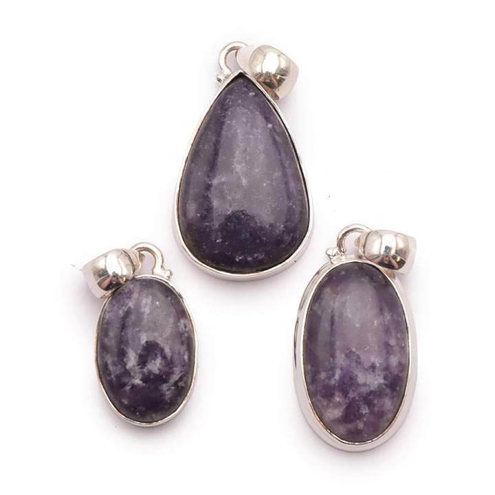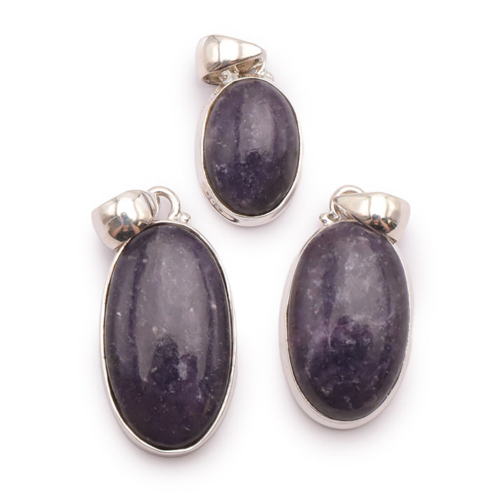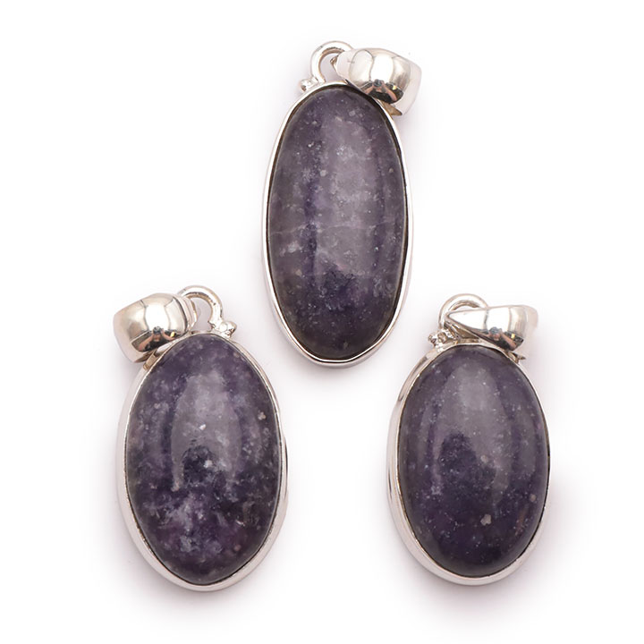 Braccialetti e pendenti in lepidolite. Ciottoli e pietre forate in lepidolite.