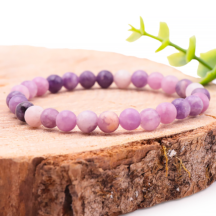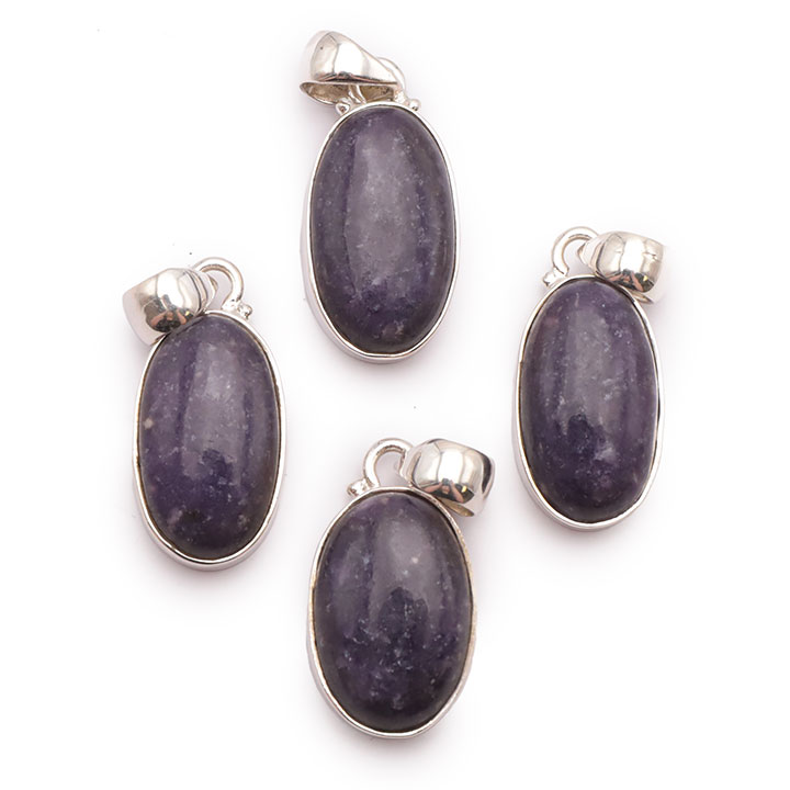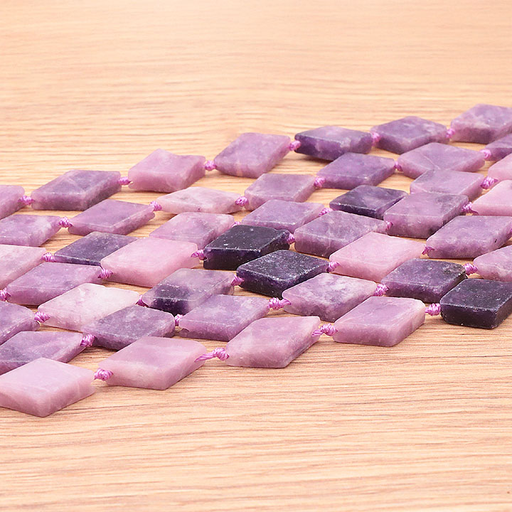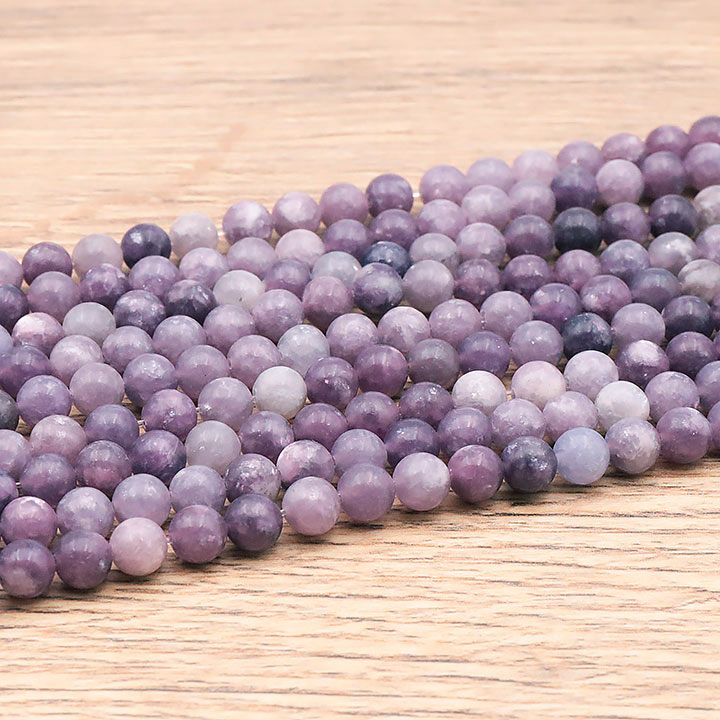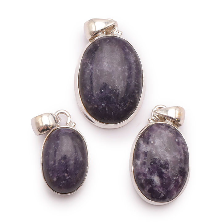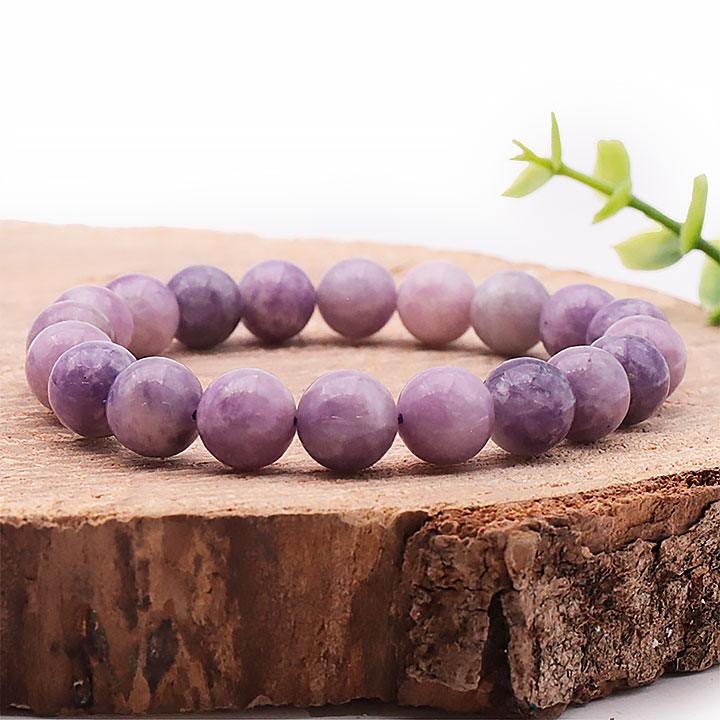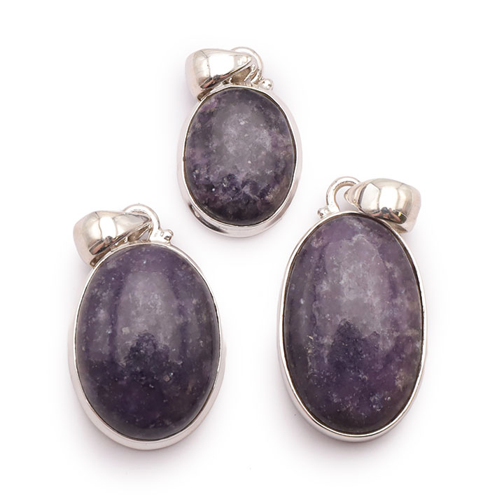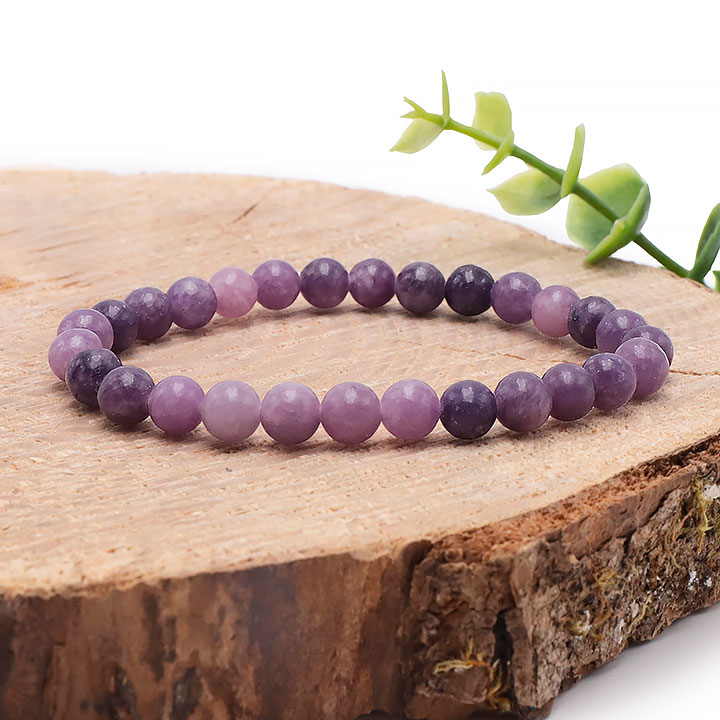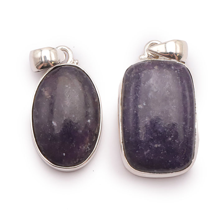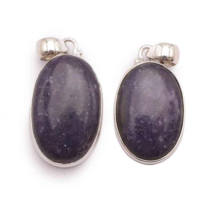 Braccialetti e pendenti in lepidolite. Ciottoli e pietre forate in lepidolite.