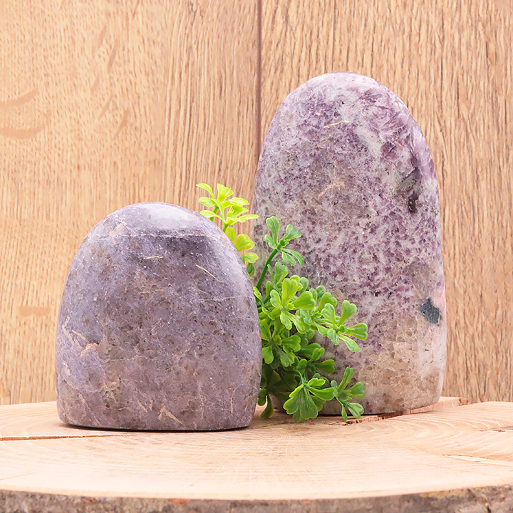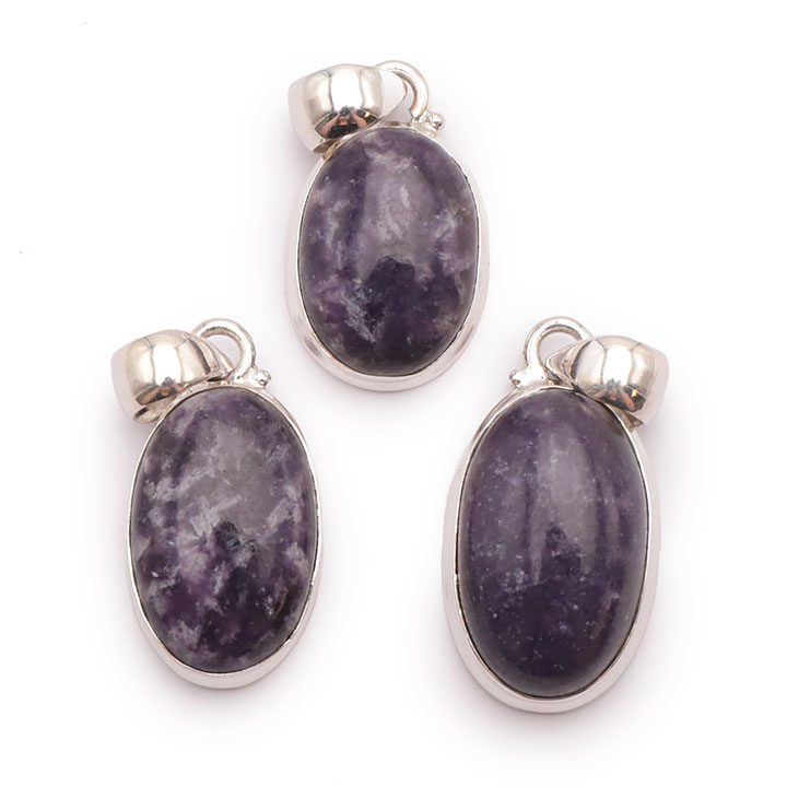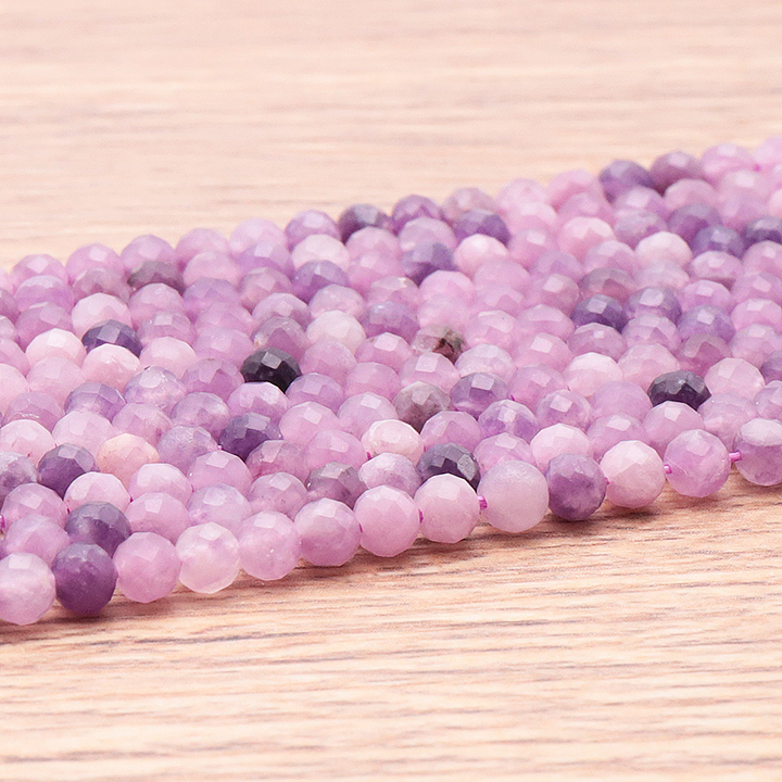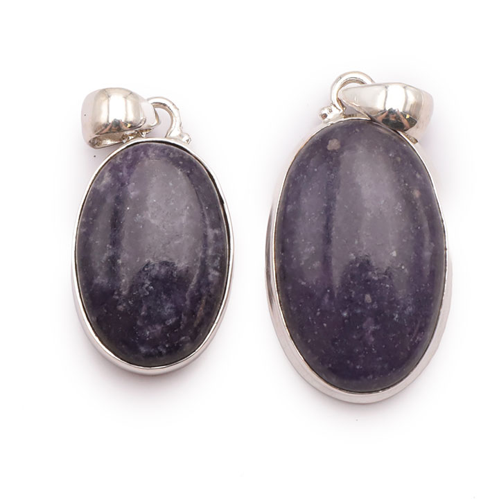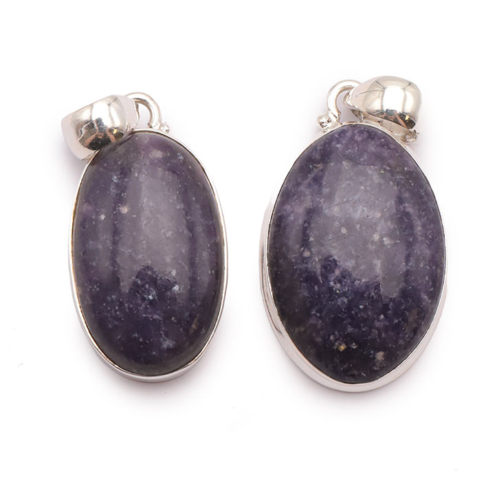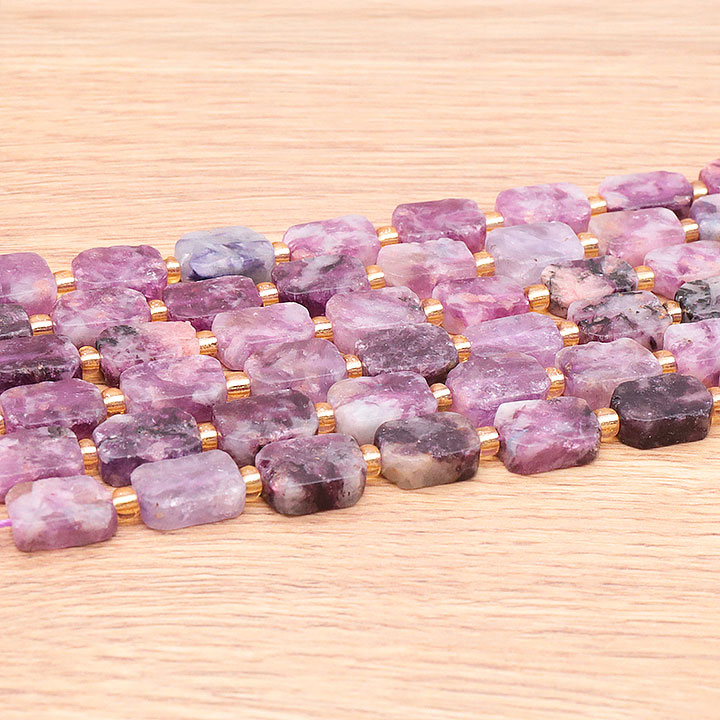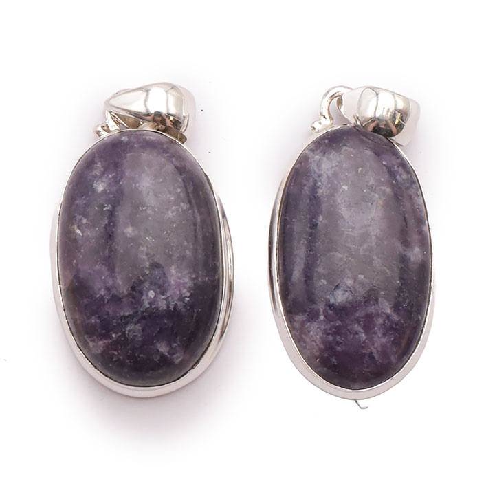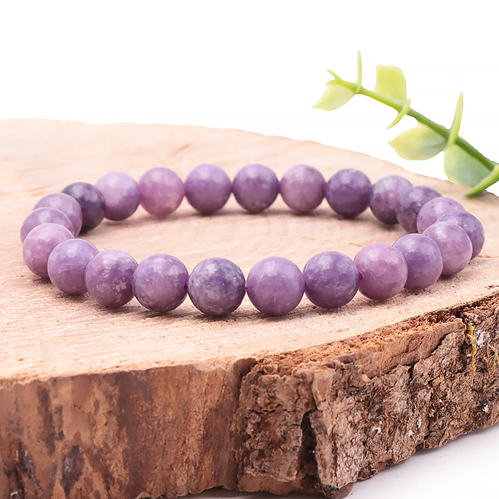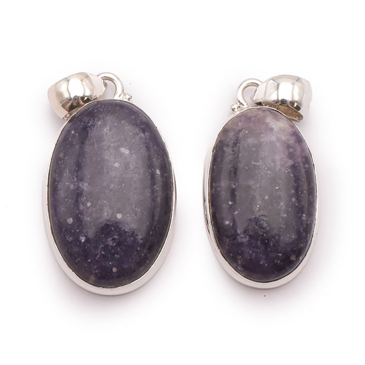 Braccialetti e pendenti in lepidolite. Ciottoli e pietre forate in lepidolite.