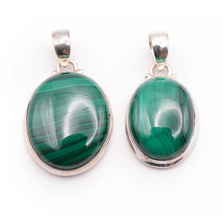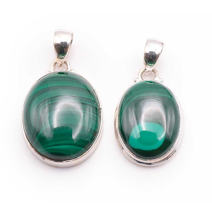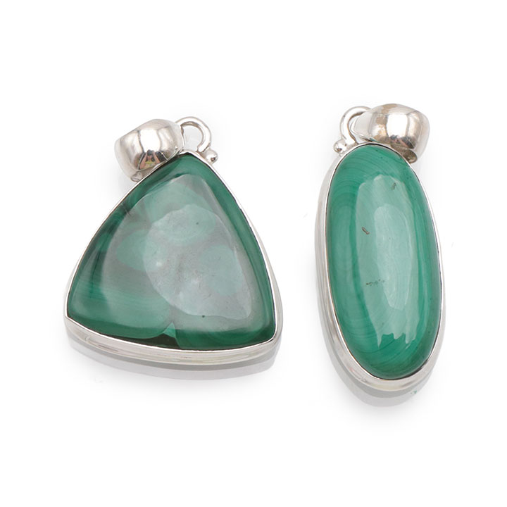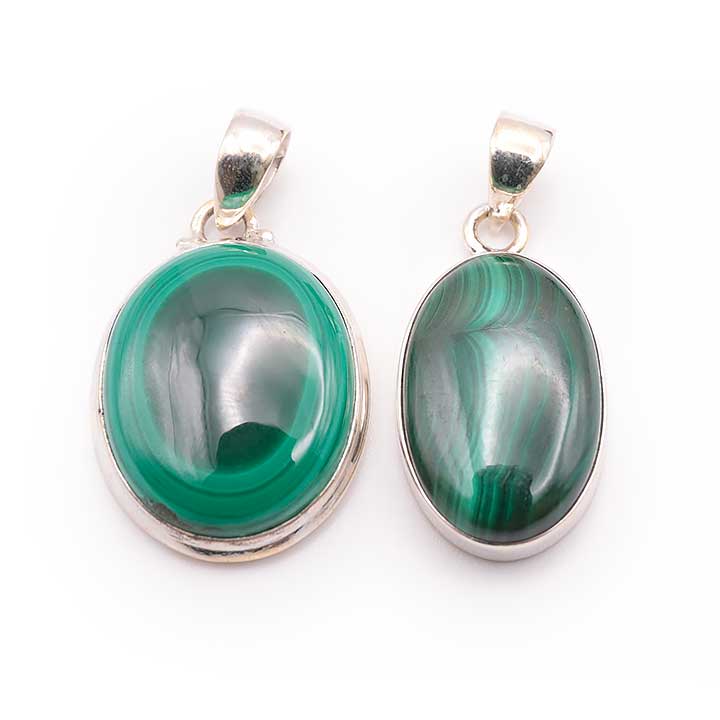 Pendente argento 925 malachite AA N°2279 (set 2 pezzi) 24.09g