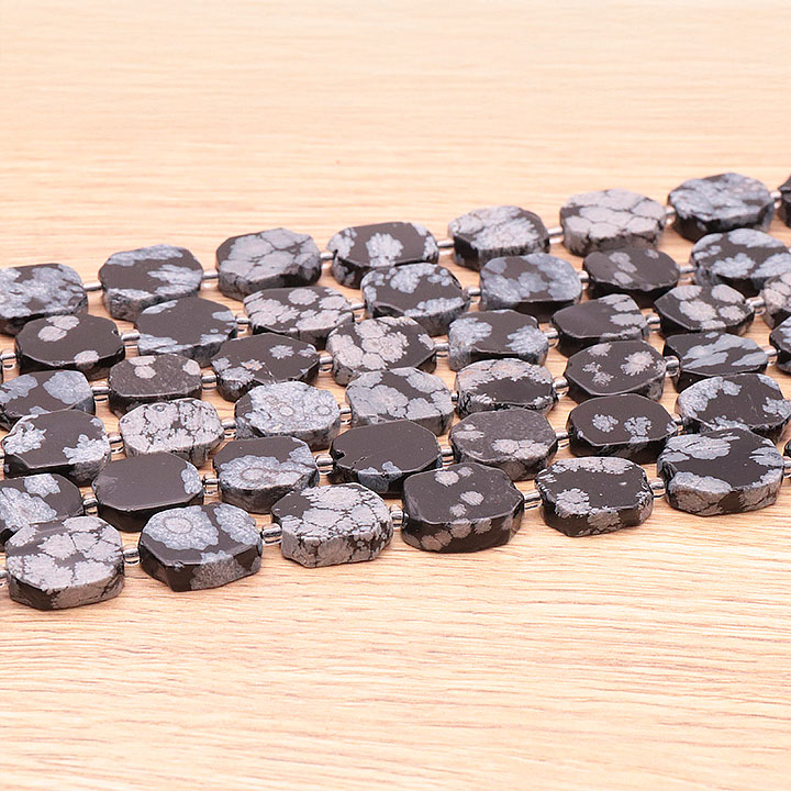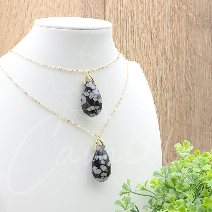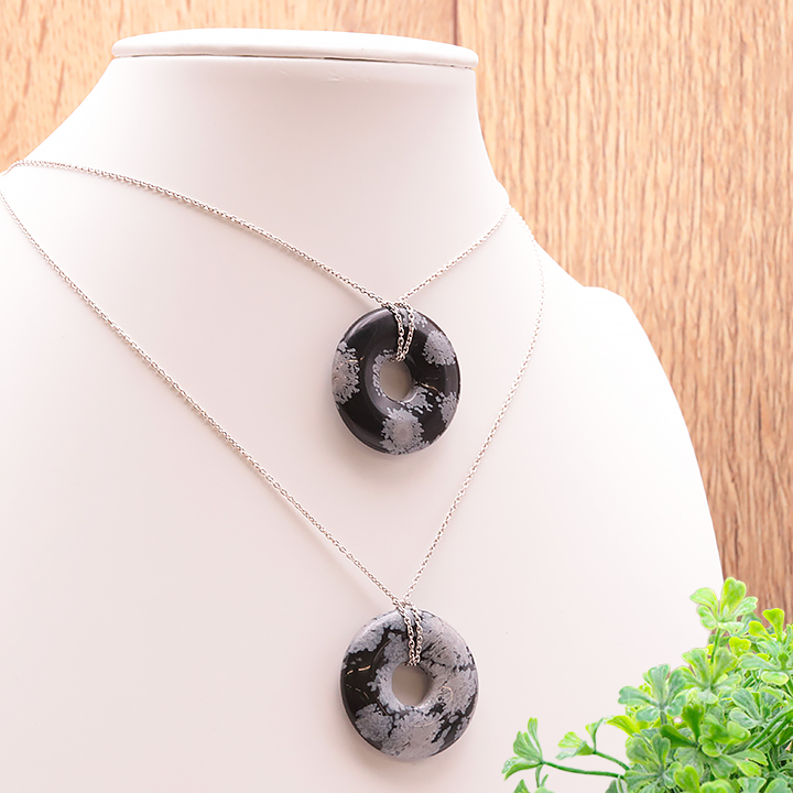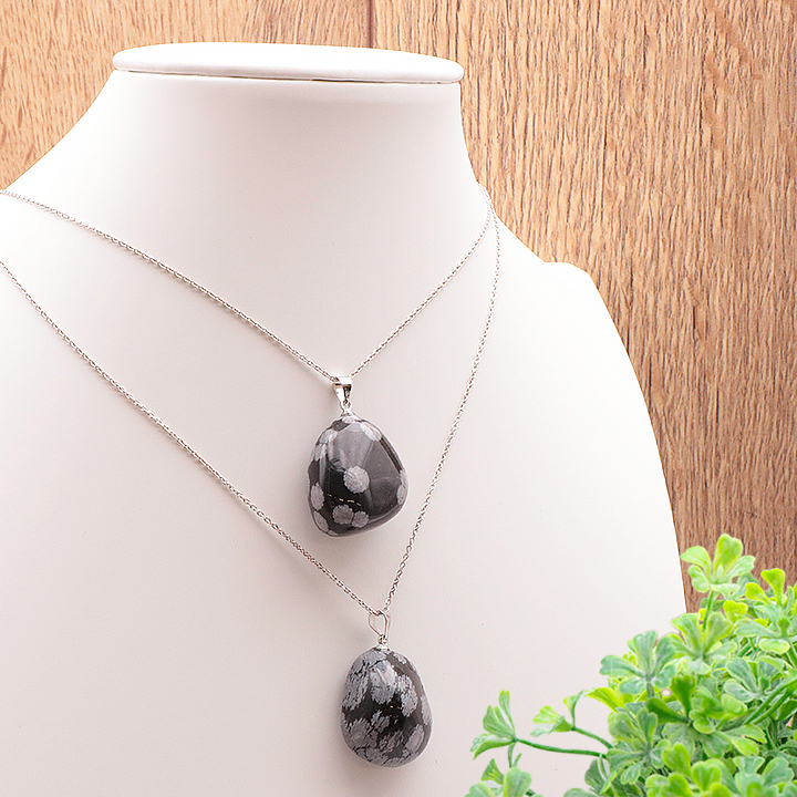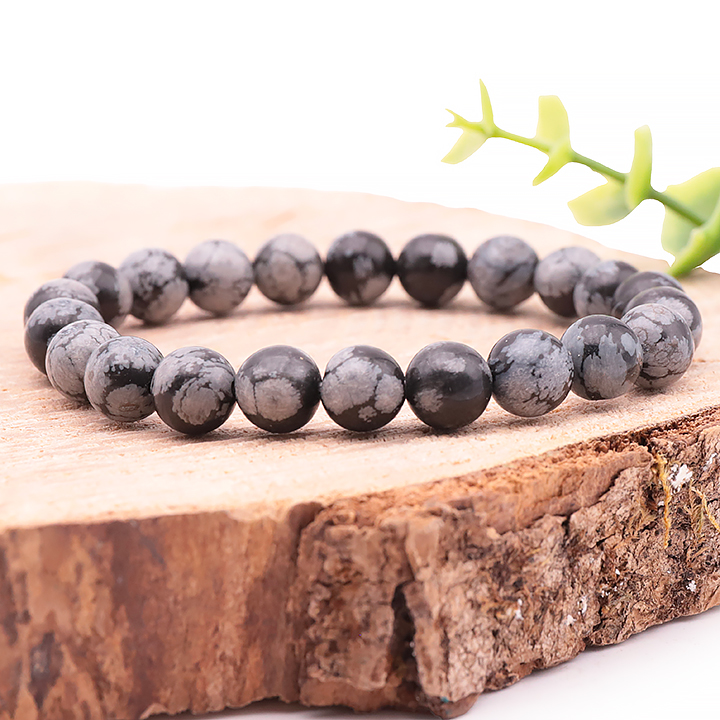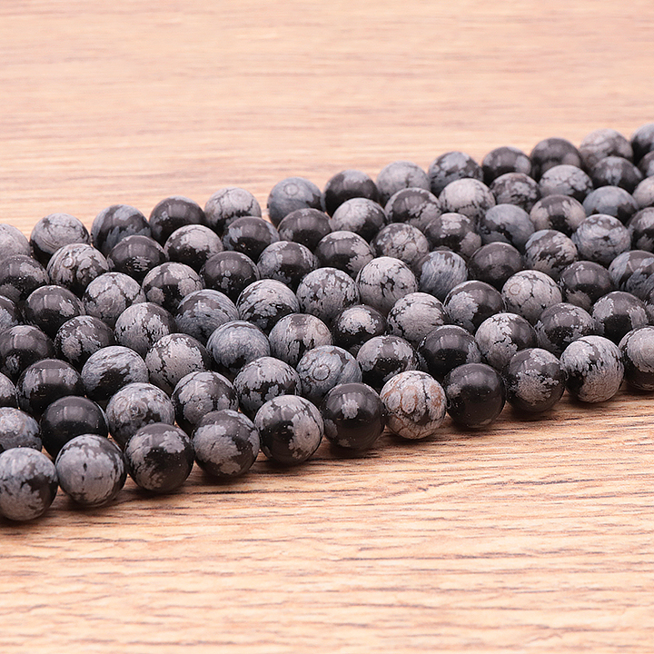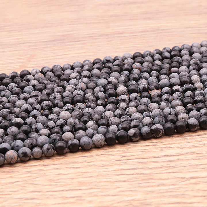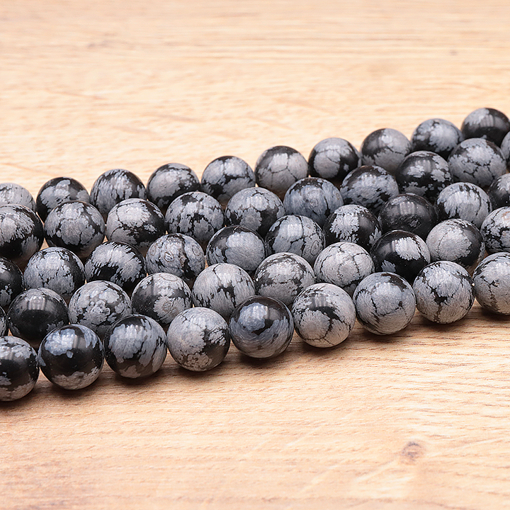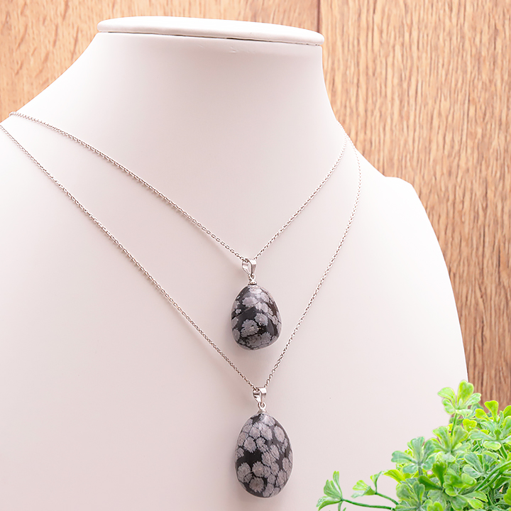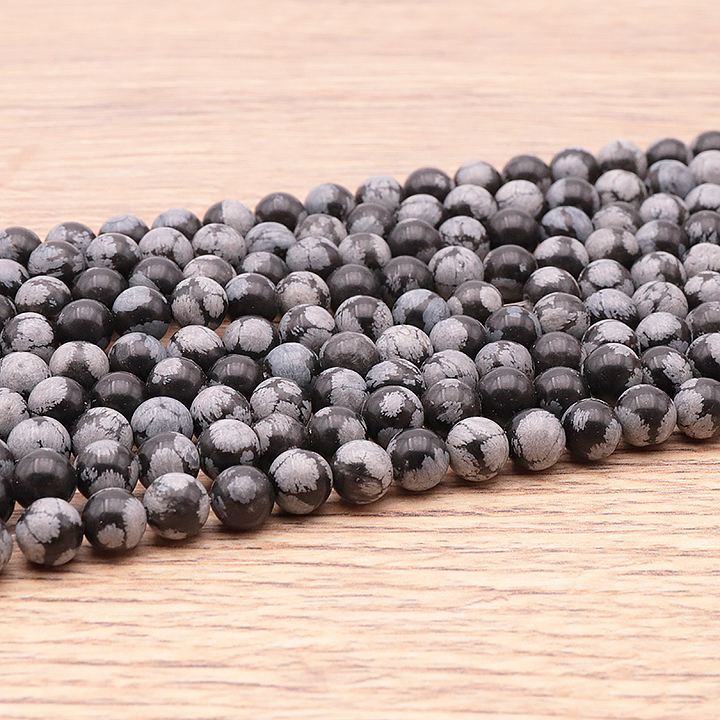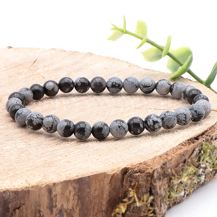 Braccialetti e pendenti in ossidiana fiocco di neve. Uova di ossidiana fiocco di neve.