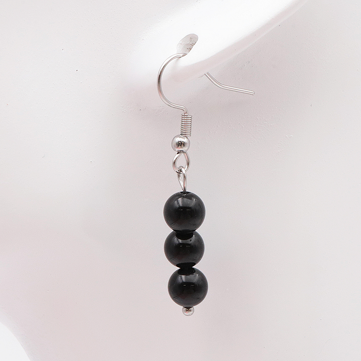 Orecchino modello 01 sfere 06mm ossidiana nera A (set 3 paia)