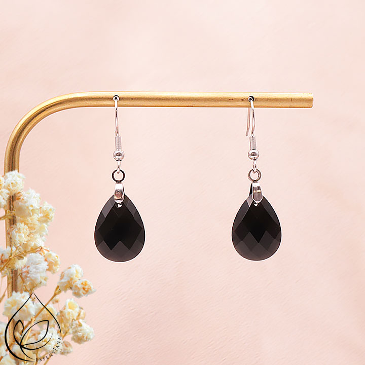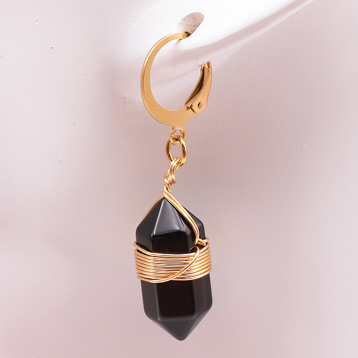 Orecchino modello 06 punta 20mm ossidiana nera A (set 2 paia)