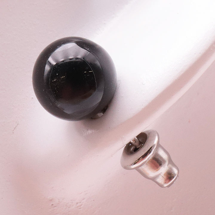 Orecchino modello 04 sfera 08mm ossidiana nera A (set di 5 paia)