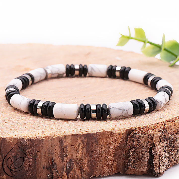 Bracciale Nemo argentato con ossidiana nera, howlite bianca AA
