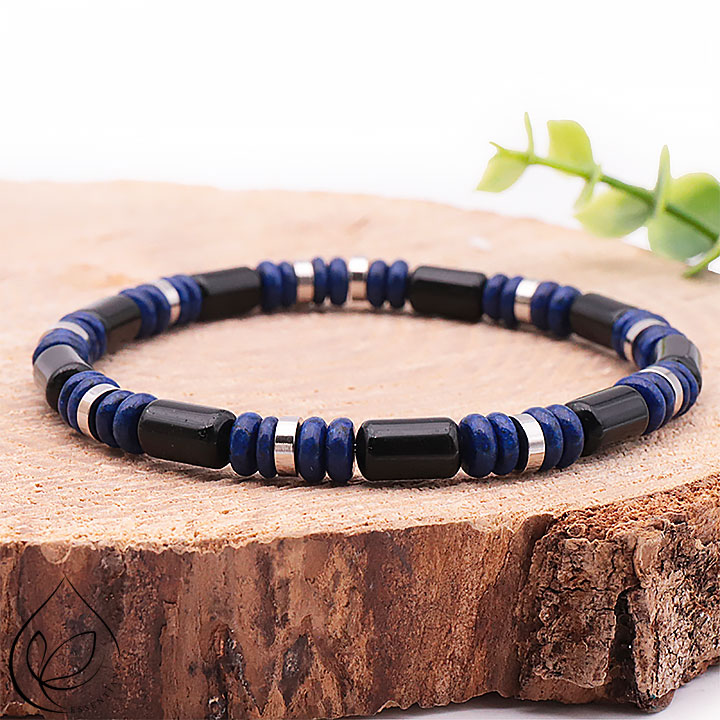 Braccialetto Nemo argento ossidiana nera, lapislazzuli trattato A