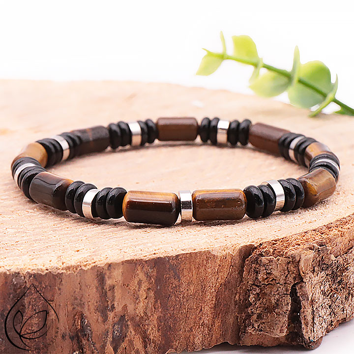 Bracciale Nemo argentato ossidiana nera, occhio di tigre AA