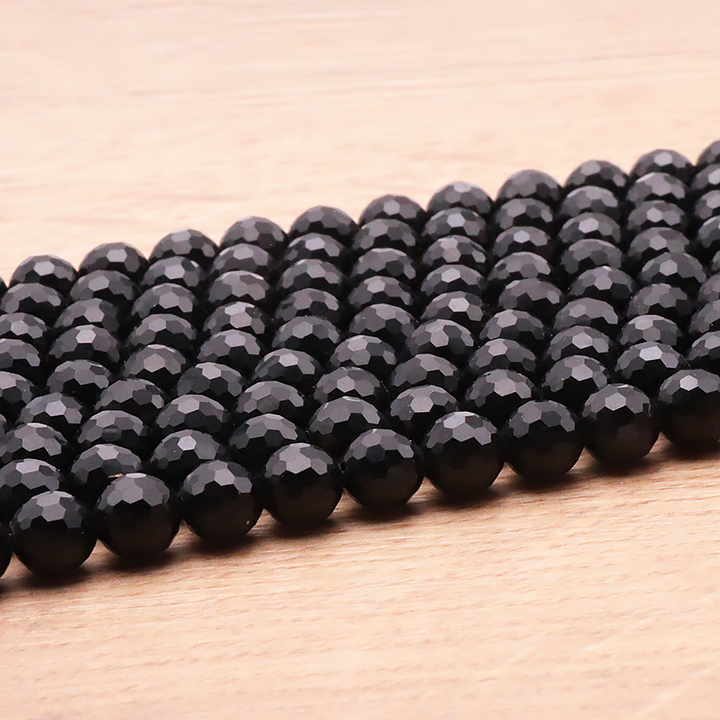 Filo di perle sfaccettate di ossidiana nera AA 06mm