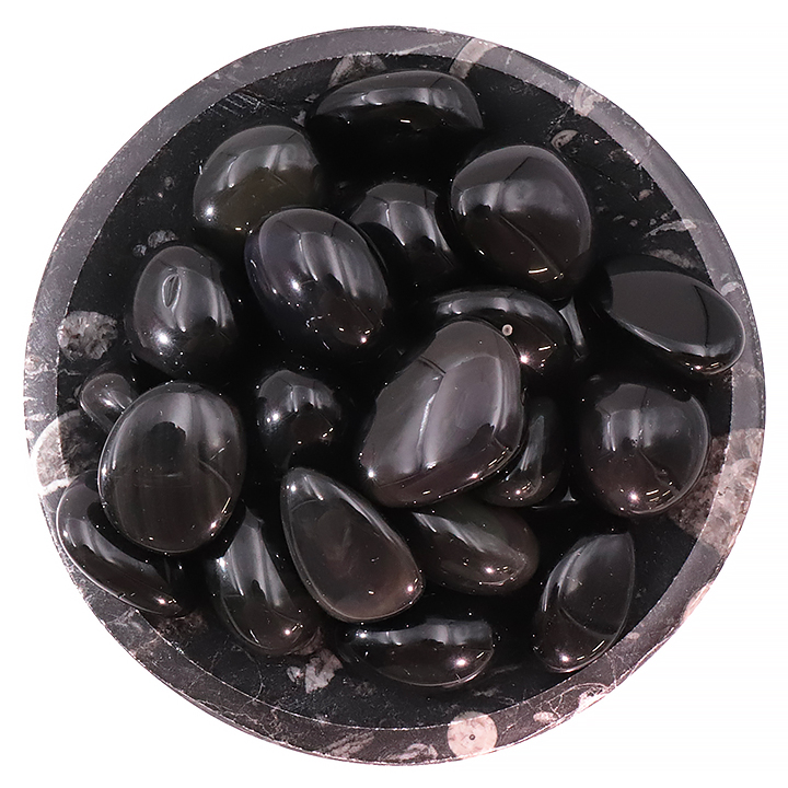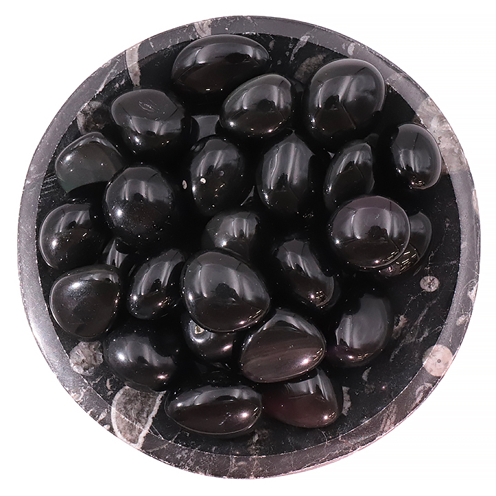 Ogni pezzo presenta riflessi unici, come un occhio mistico nella pietra nera.