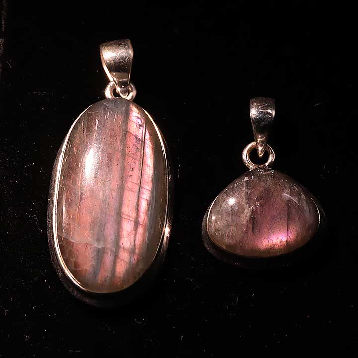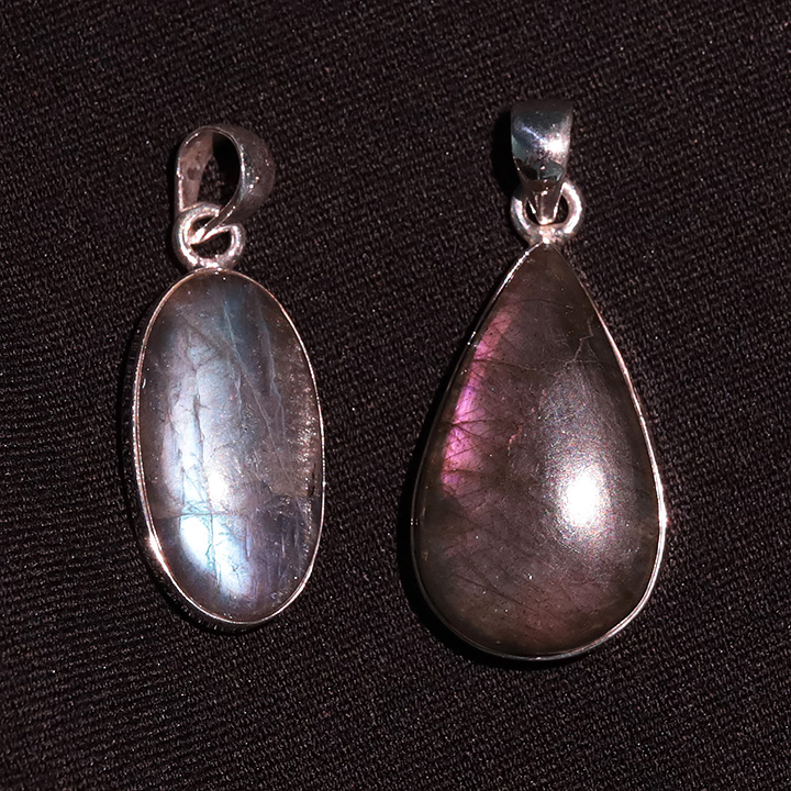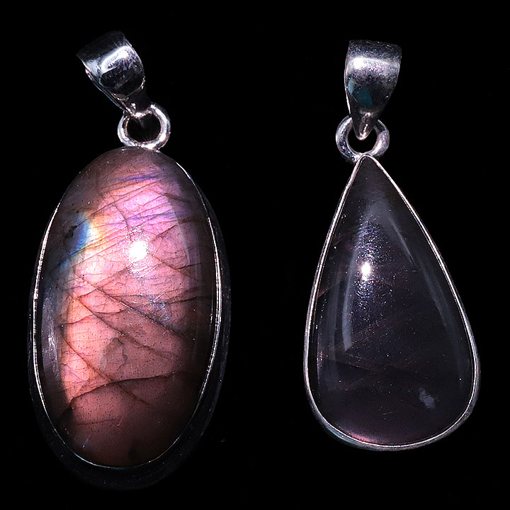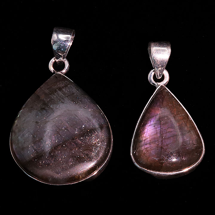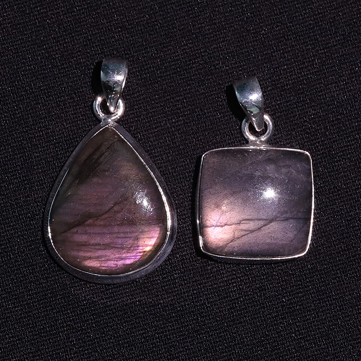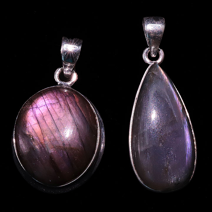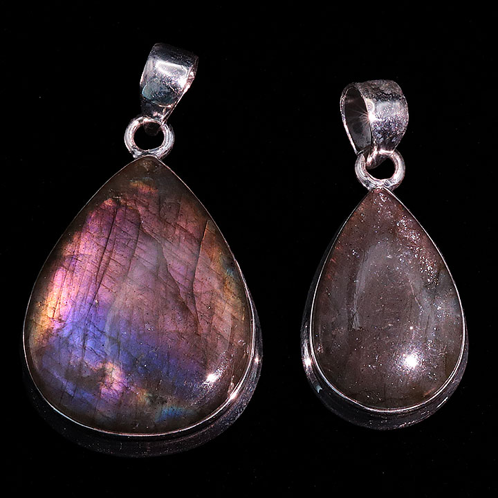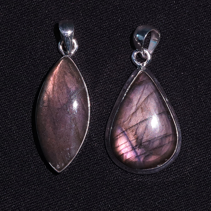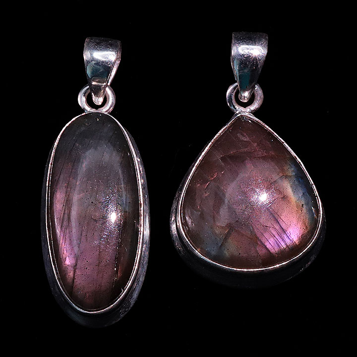 Ciondolo argento 925 Labradorite viola AAA N°3726 (2 pezzi) 16,77g