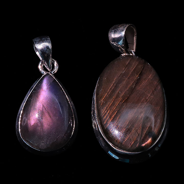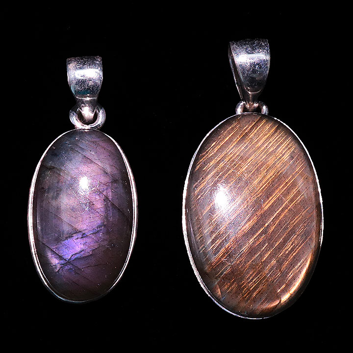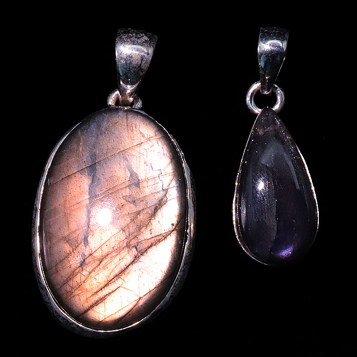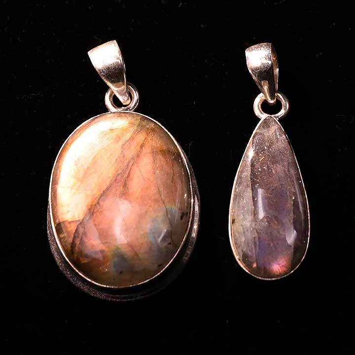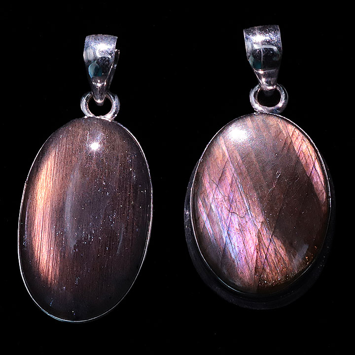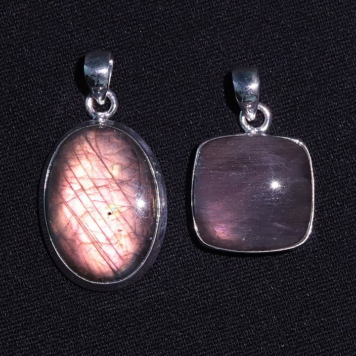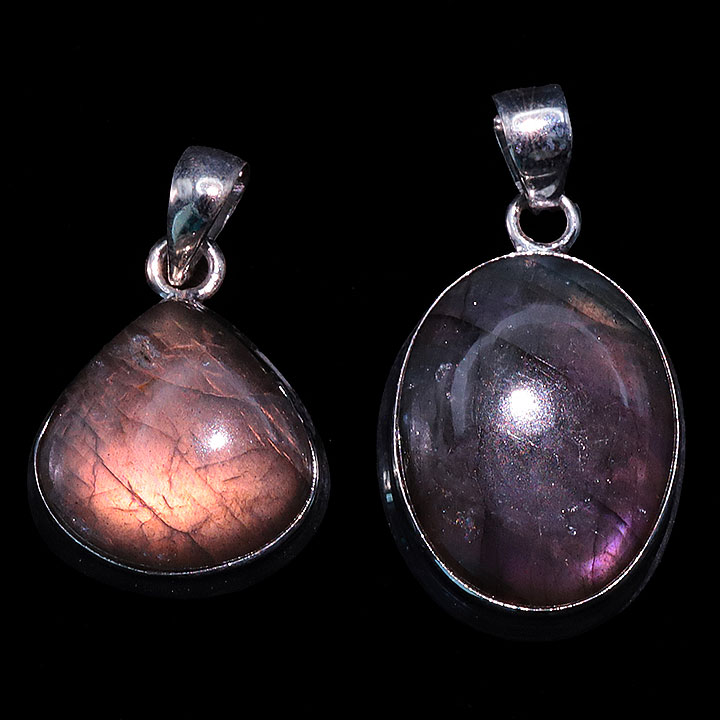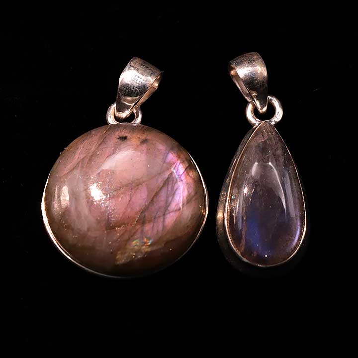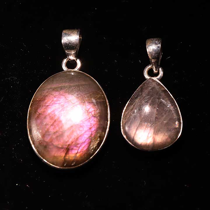 Ciondolo argento 925 Labradorite viola AAA N°3726 (2 pezzi) 16,77g