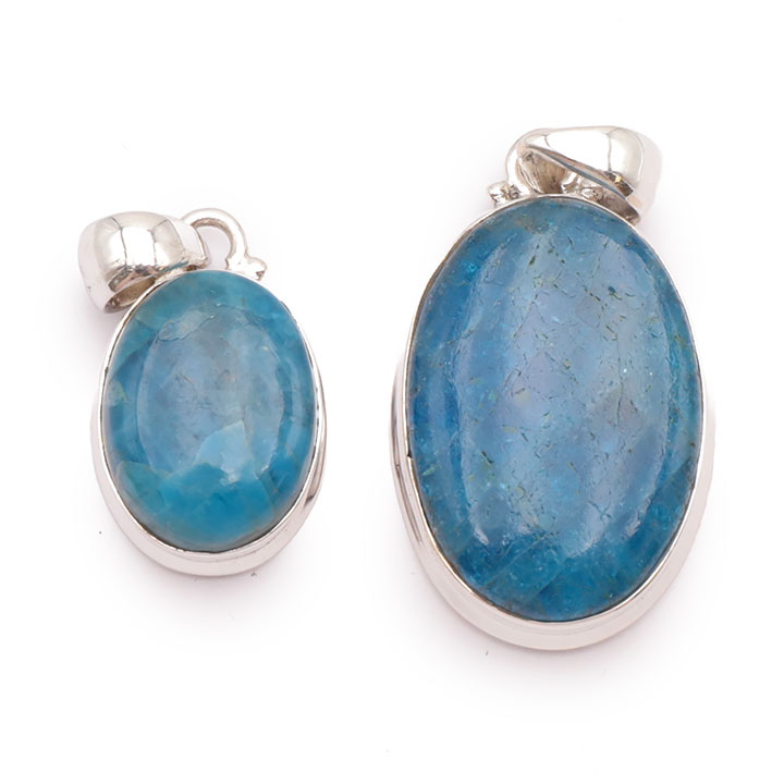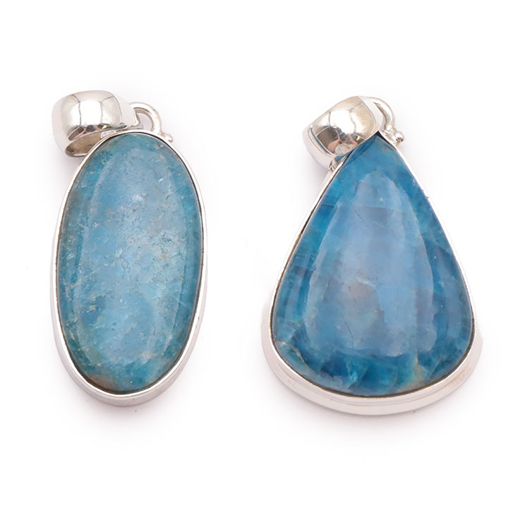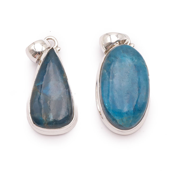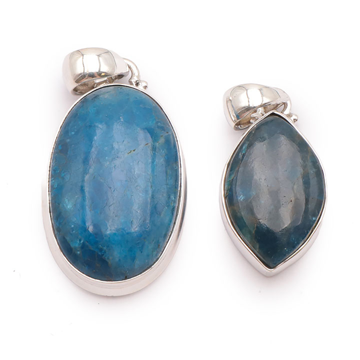 Ciondolo argento 925 apatite blu AA+ N°1677 (set di 2 pezzi) 21,85g