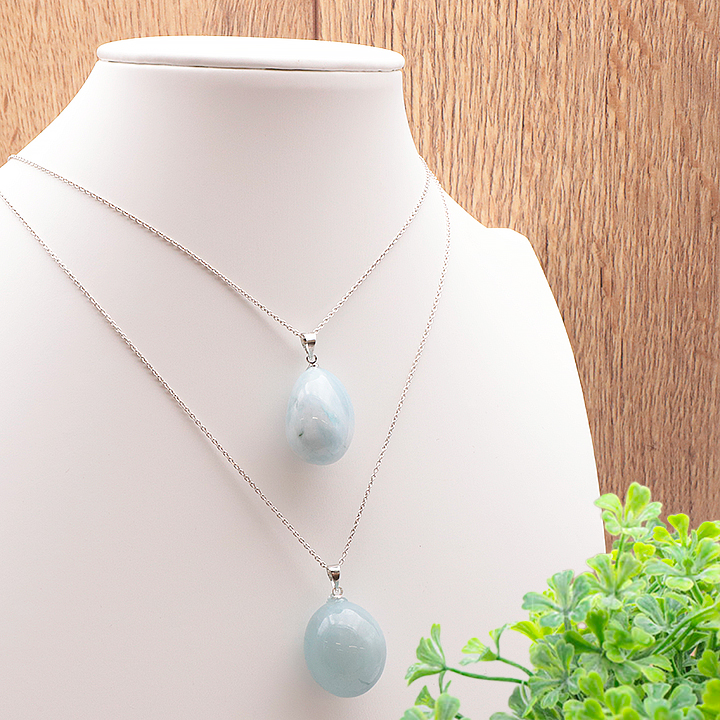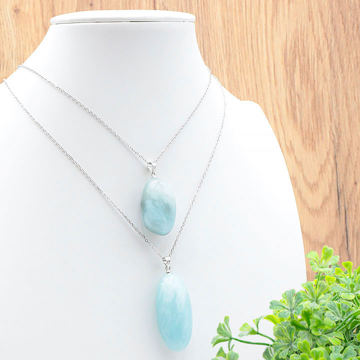 Ciondolo pietra levigata acquamarina Brasile A 30 a 40mm (set 3 pezzi)