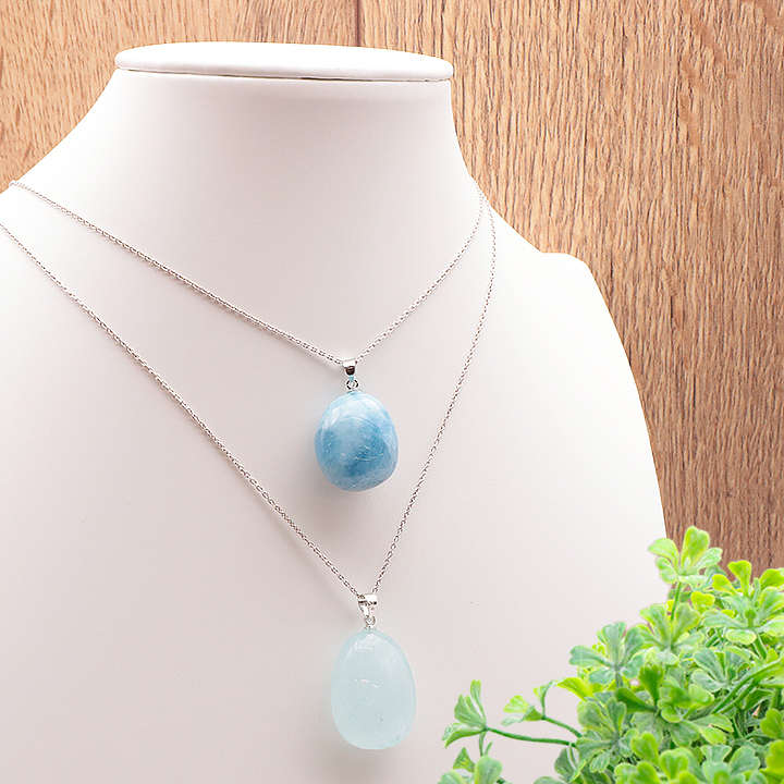 Ciondolo pietra burattata acquamarina Brasile A 20 a 30mm (set 3 pezzi)