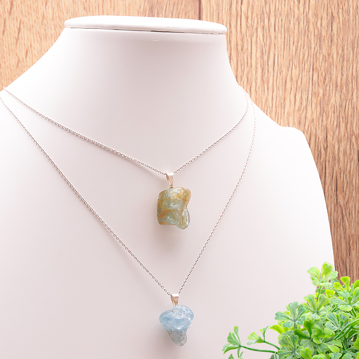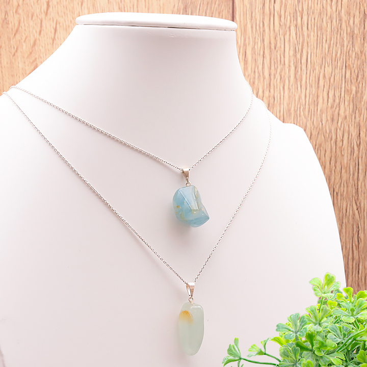 content:Pendente pietra burattata calcedonio blu A 15 a 30mm (set di 3 pezzi)
