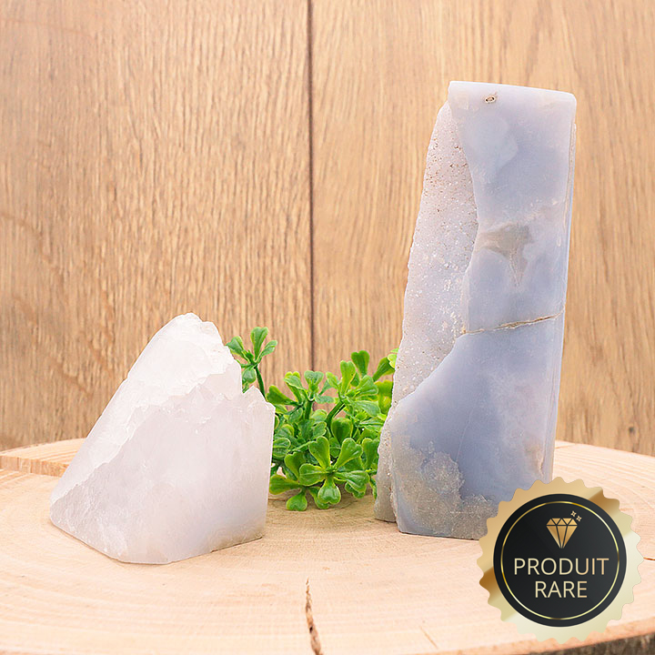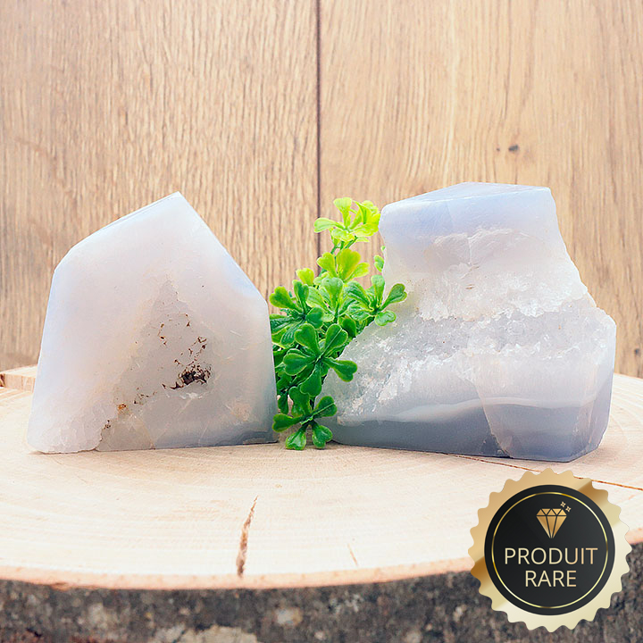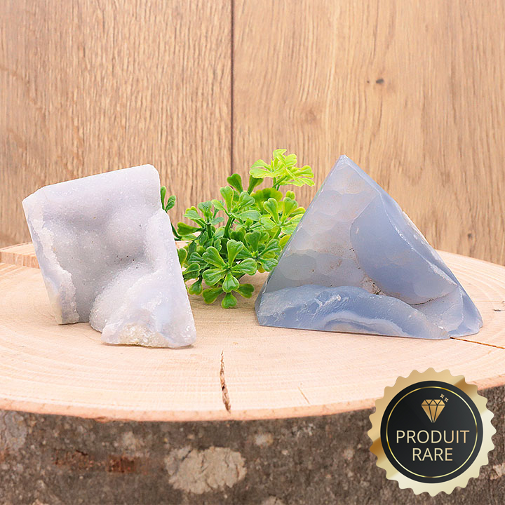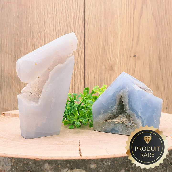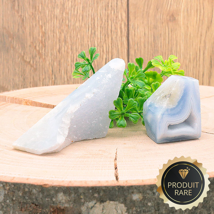 Cristalli tagliati di calcedonio blu cristallizzato Namibia AA 40 a 60g (set 2 pezzi)