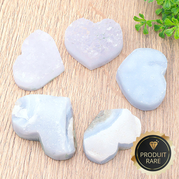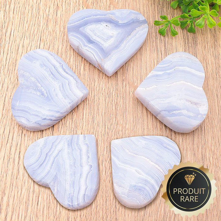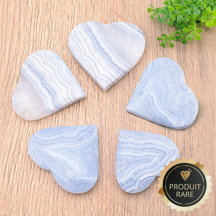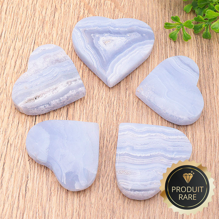 Galet cuore cristalli calcedonio blu Namibia AA 60 a 70mm (1 pezzo)