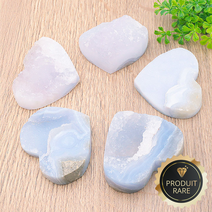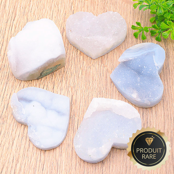 Galet cuore cristalli calcedonio blu Namibia AA 50 a 60mm (1 pezzo)