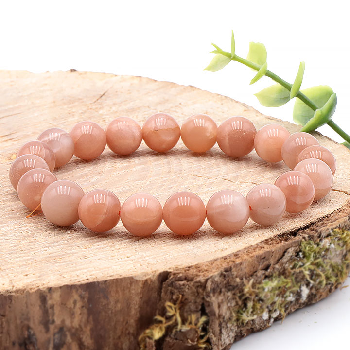 Braccialetti in pietra di luna rosa. Pietre burattate e perle di pietra di luna rosa.