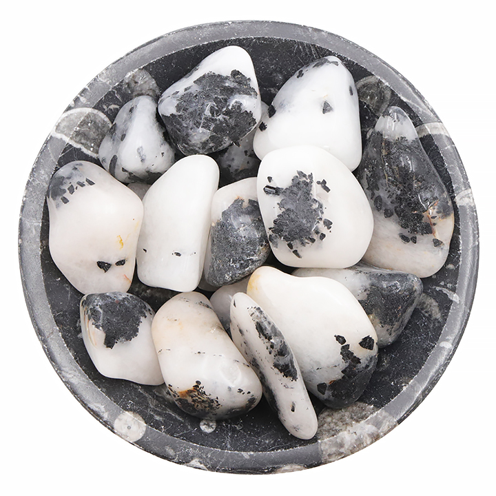 Pietra rotolata diaspro dalmata AB 40 a 60mm (set 1kg)
