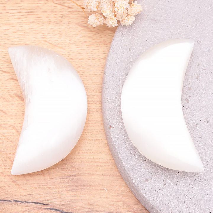 Mezzaluna di selenite A+ incisa 70 a 80mm (set 3 pezzi)
