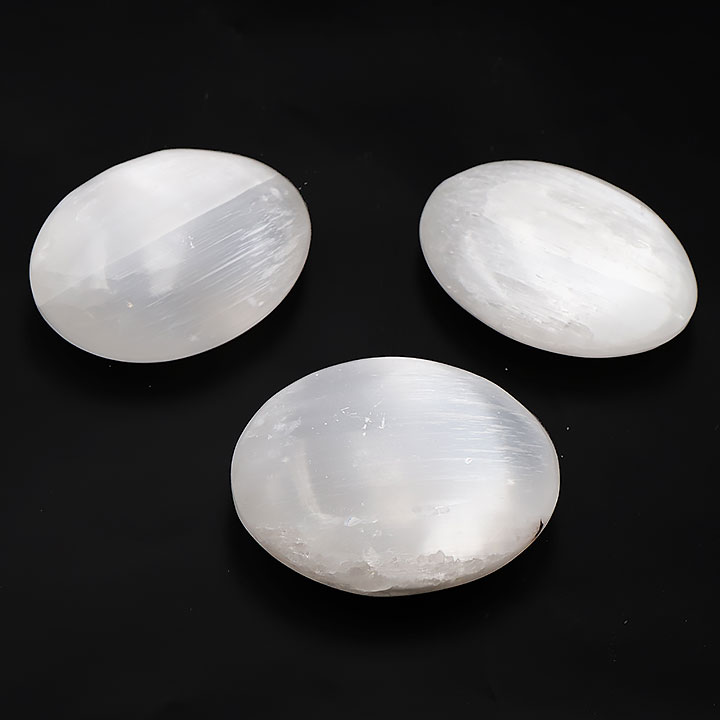 Ciottolo di selenite A+ 65 a 75mm (set di 3 pezzi)