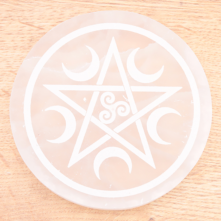 Porta incenso di selenite A+ rotondo luna stella 100mm (1 pezzo)