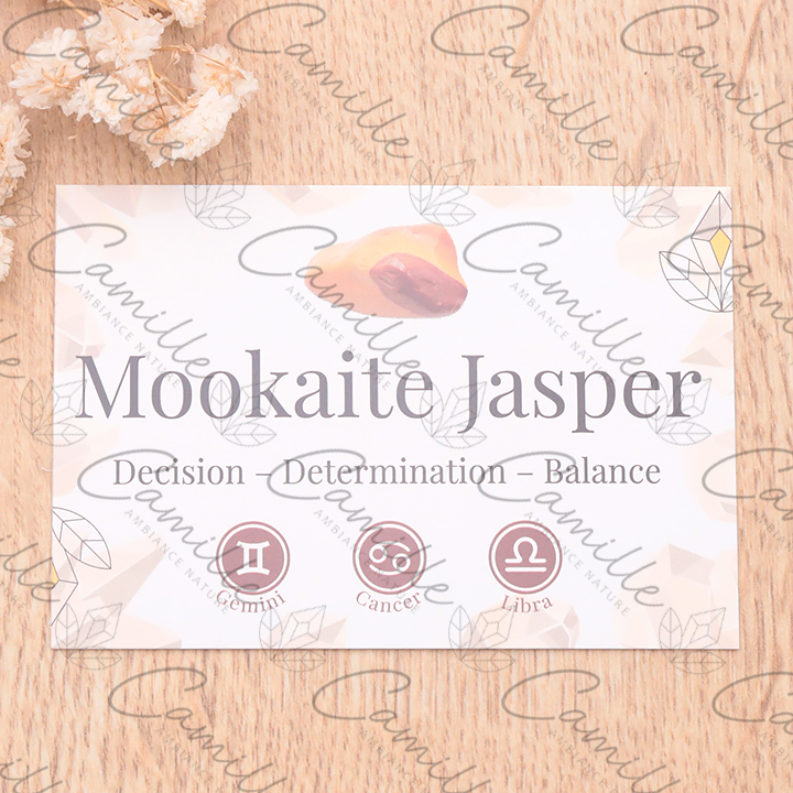 Scheda informativa in inglese diaspro mookaite (set 10 pezzi)