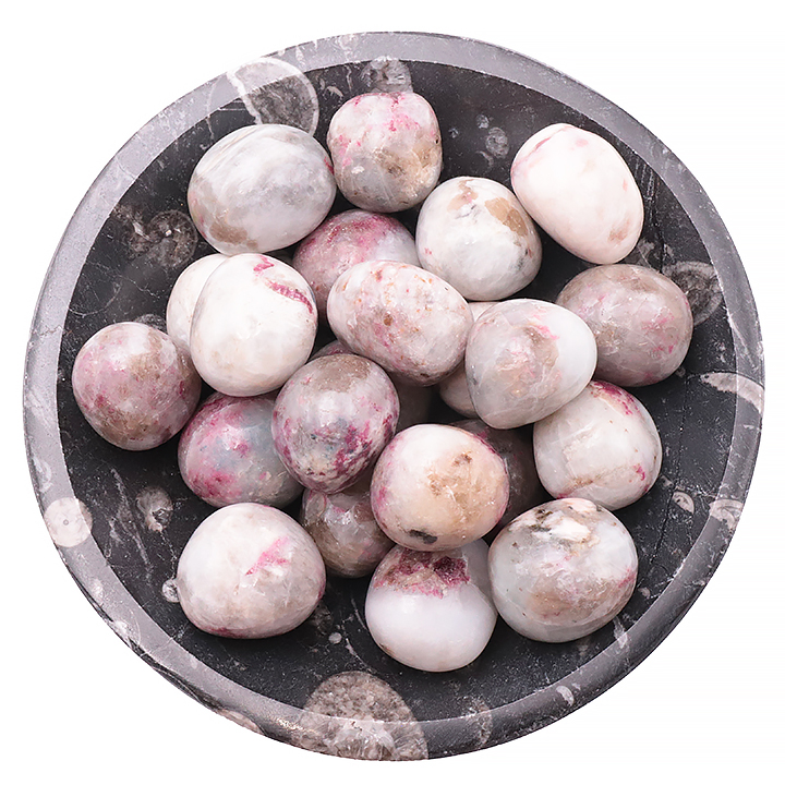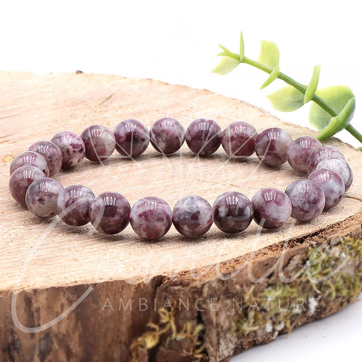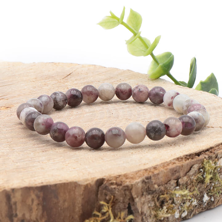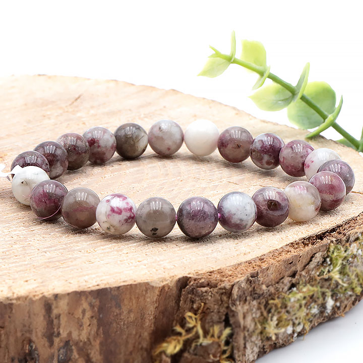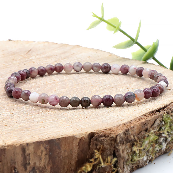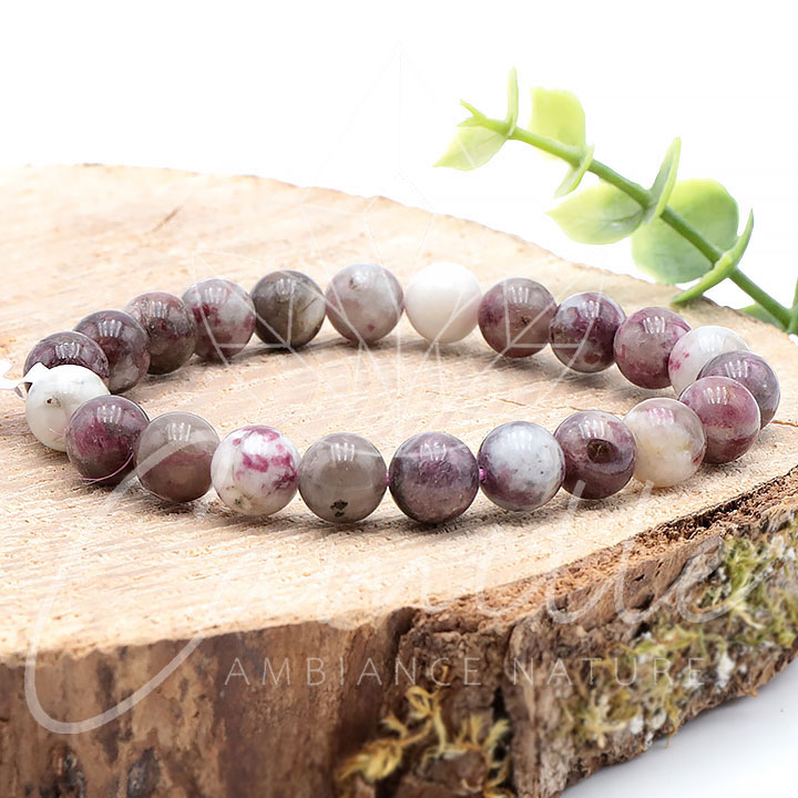 Braccialetti in tormalina rosa su quarzo. Pietre grezze e ciottoli di tormalina rosa.