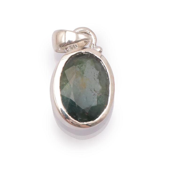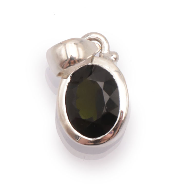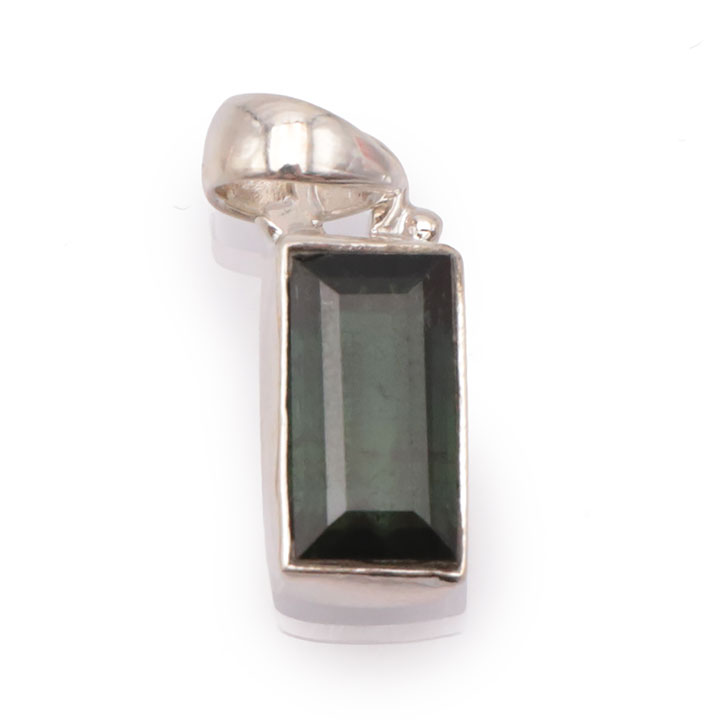 Ciondolo argento 925 gemma di tormalina sfaccettata verde (verdelite) AA+ N°3109 (1 pezzo) 3.80g