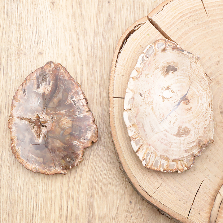 Fetta di legno fossile lucidata A 200 a 300g (1 pezzo)