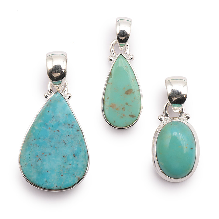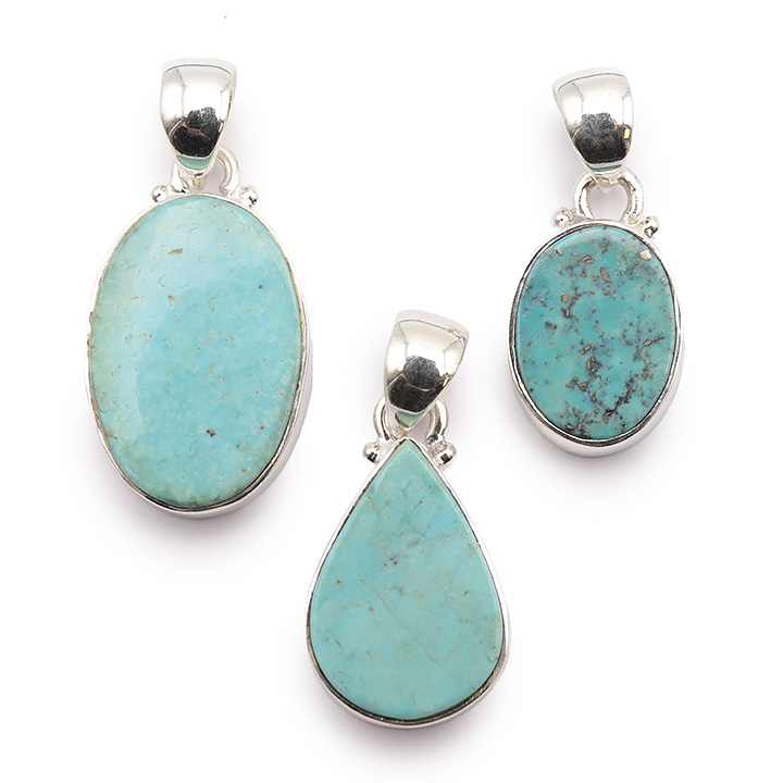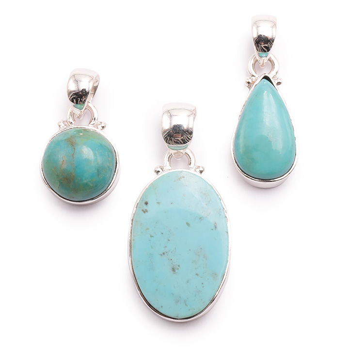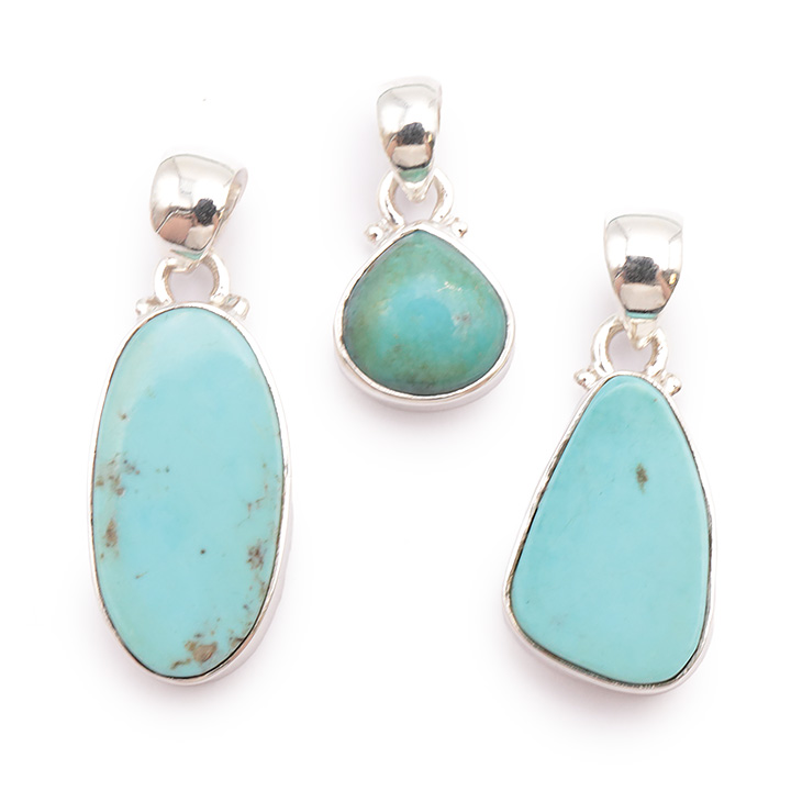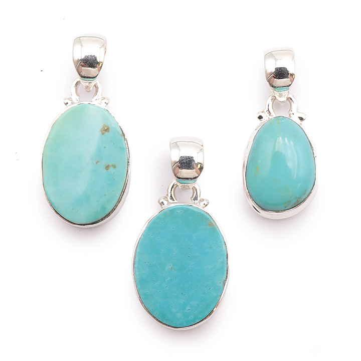 Ciondolo argento 925 turchese di Cina AA N°3626 (3 pezzi) 15,55g
