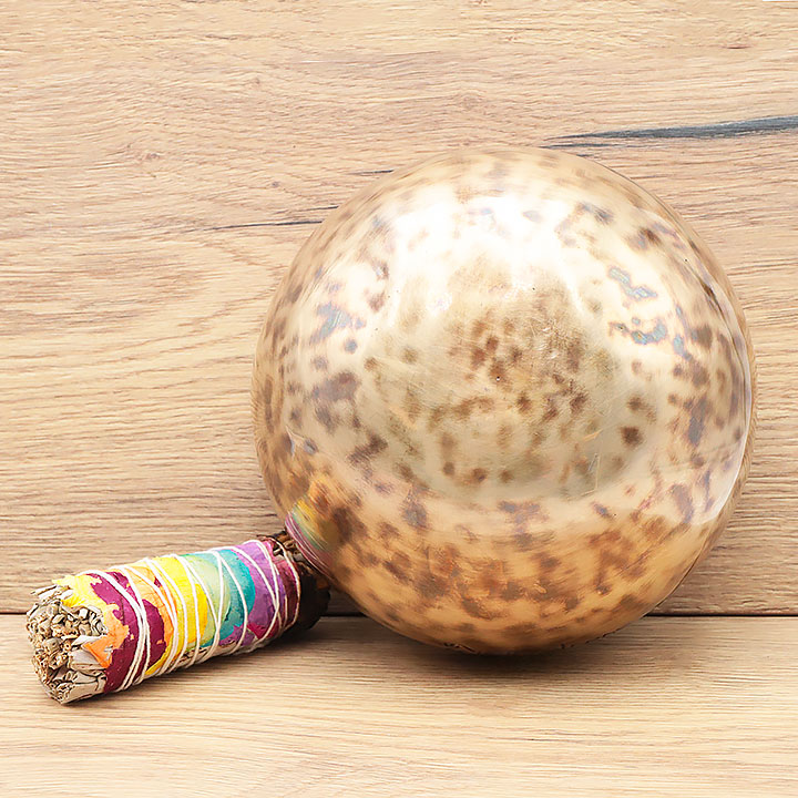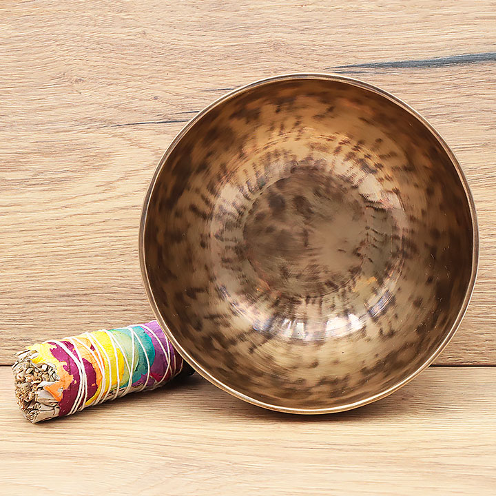 *Campana tibetana prodotta artigianalmente con una lega di qualità superiore per una risonanza profonda e durevole. Composta al 98% di bronzo puro (72% rame, 26% stagno); completata da lievi tracce di leghe metalliche tradizionali (ferro, zinco, alluminio...) per migliorare il timbro e la sostenibilità della nota.