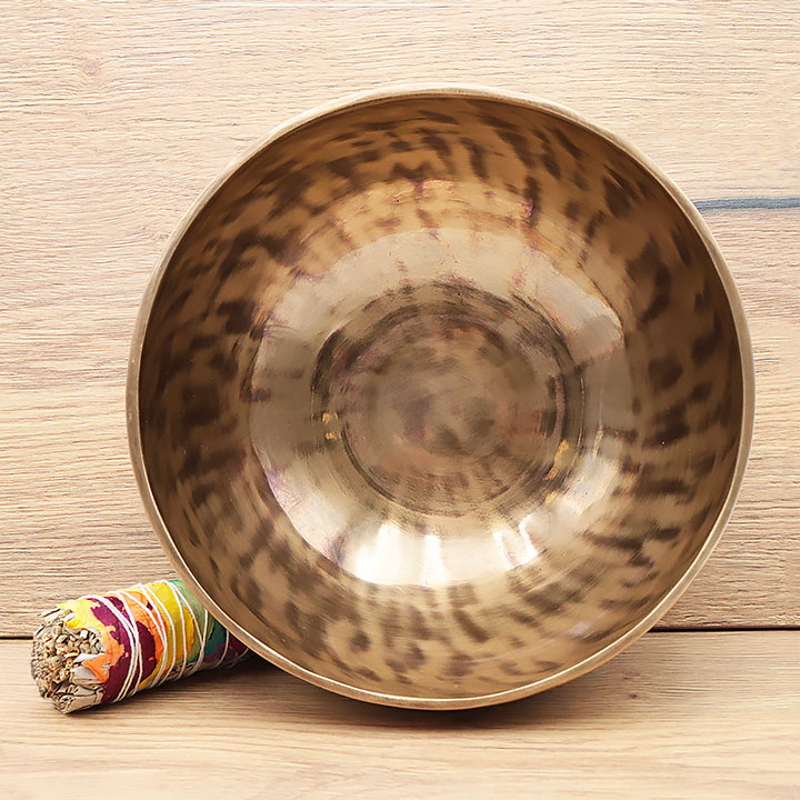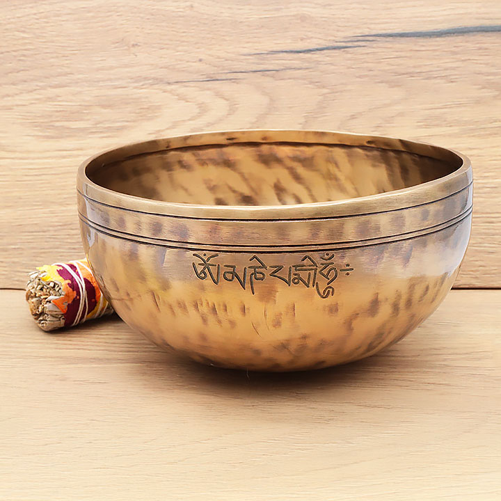 *Ciotola tibetana fabbricata artigianalmente con una lega di qualità superiore per una risonanza profonda e duratura. Composta di bronzo puro 98% (rame 72% stagno 26%); completata da lievi tracce di leghe metalliche tradizionali (ferro, zinco, alluminio...) al fine di migliorare il timbro e il mantenimento della nota.