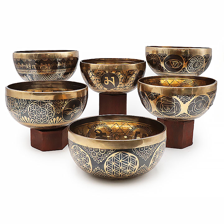 *Il decoro interno, identico per questo riferimento, rispetta una stessa linea di lavoro. All'esterno, ogni set è ornato di un decoro unico, ispirato liberamente dalla mano dell'artigiano. Il motivo non può essere scelto e sarà inviato casualmente; questa componente di sorpresa è un'intenzione accuratamente depositata dagli artigiani nepalesi. La foto n. 4, fornita a titolo indicativo, illustra diversi motivi suscettibili di essere ricevuti.