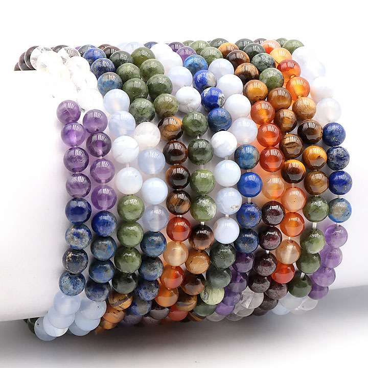 Pietra(e): Granato Rosso / Corniola / Occhio di Tigre / Giada Nefrite / Calcedonio Blu / Lapis Lazuli / Ametista / Cristallo di Rocca Aspetto: Sfera / Levigate Diametro (in cm): 16 – 18 cm