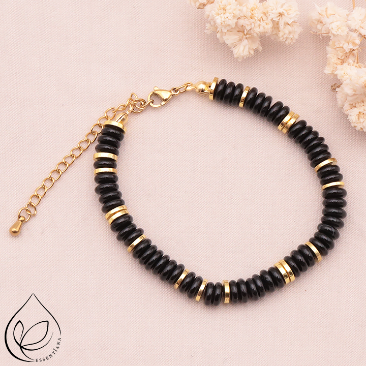 Taglia del bracciale: 17 a 23cm Diametro delle perle: 06mm Metallo: Acciaio inossidabile. ✔ Acciaio 304 – Qualità professionale I nostri gioielli sono realizzati in acciaio inossidabile 304, il riferimento mondiale per i gioielli durevoli e ipoallergenici. Questa lega garantisce brillantezza, resistenza e comfort quotidiano. *Per preservare i vostri gioielli, evitare il contatto con l'acqua.