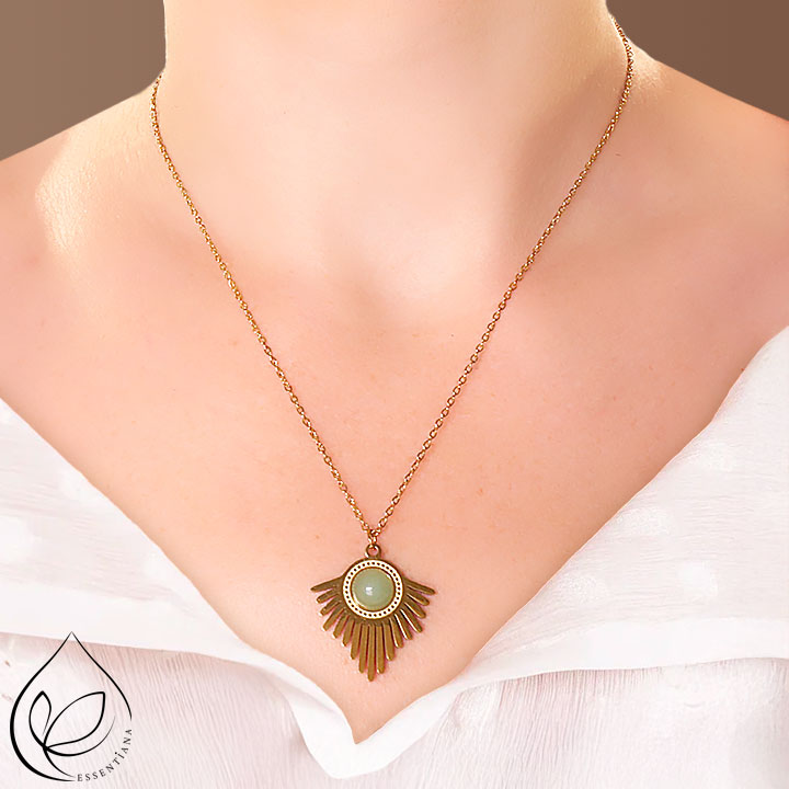 Dimensione della collana: 44 a 49cm Dimensione della pietra (in mm): circa 8 Dimensione del ciondolo (in mm): circa 24x27 Metallo: Acciaio Inossidabile. ✔ Inox 304 – Qualità professionale I nostri gioielli sono realizzati in acciaio inossidabile 304, il riferimento mondiale per i gioielli durevoli e ipoallergenici. Questa lega garantisce lucentezza, resistenza e comfort quotidiano. *Per preservare i vostri gioielli, evitare il contatto con l’acqua.