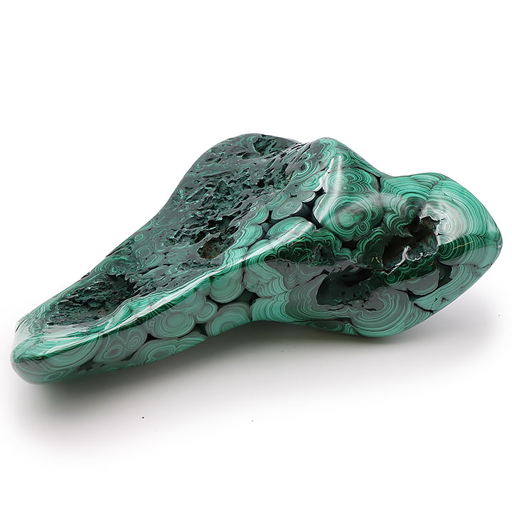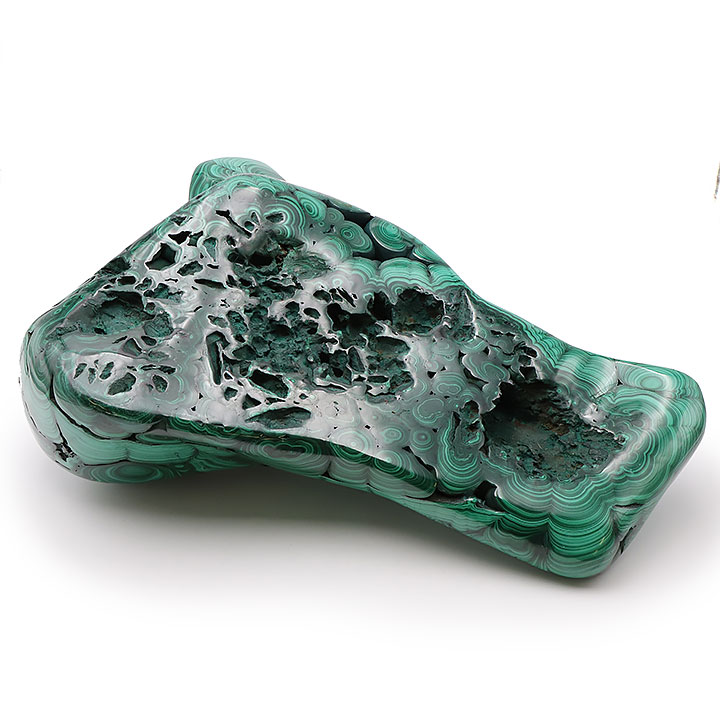 *La malachite presenta sezioni porose o cavità; queste caratteristiche sono normali e parti integranti della pietra.