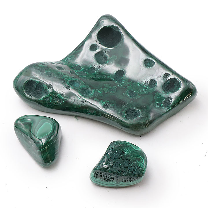 *La malachite presenta parti porose o cavità, le parti con queste irregolarità sono quindi normali e parti integranti della pietra.