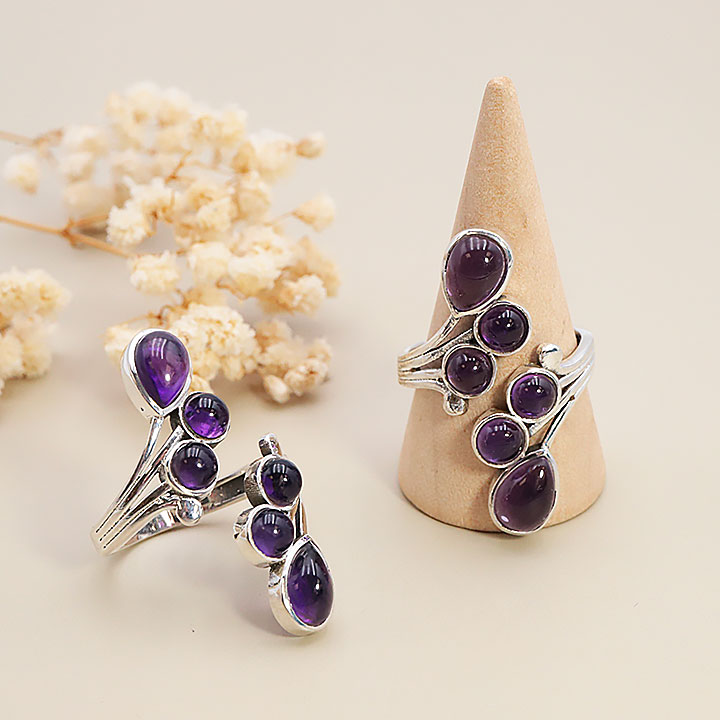 Anello argento 925 modello 01 ametista Brasile AA (1 pezzo) set N°1A0525