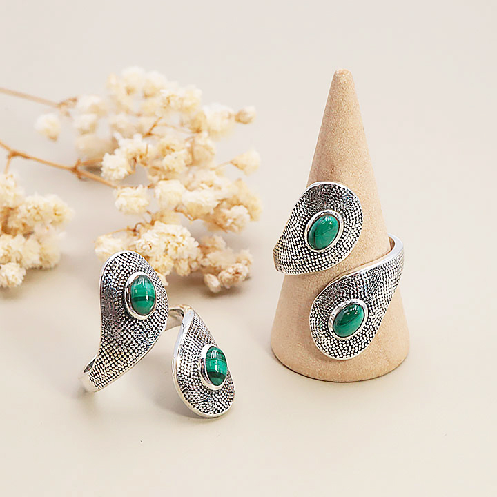 Anello argento 925 modello 03 malachite AA (1 pezzo) set N°1A0525