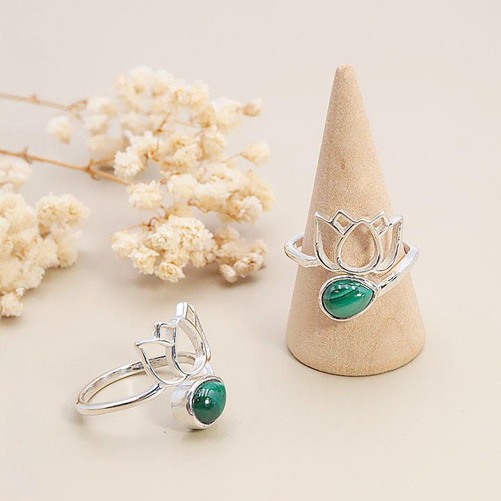 Anello in argento 925 modello 02 malachite AA (1 pezzo) set N°1A0525
