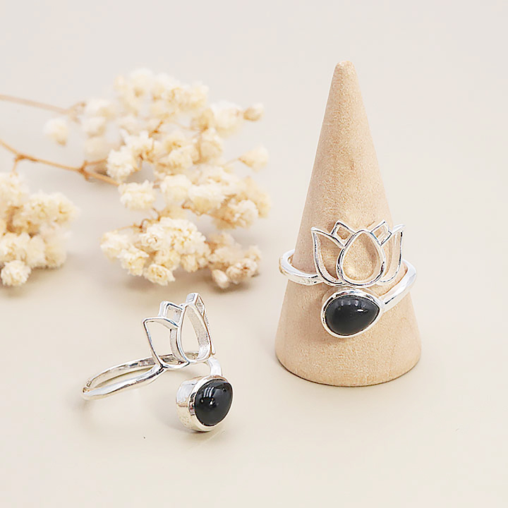 Anello argento 925 modello 02 ossidiana nera AA (1 pezzo) set N°1A0525