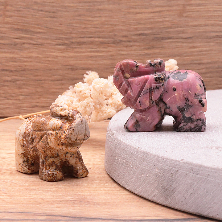 Elefante 50mm quarzo rosa Brasile A (set 2 pezzi)