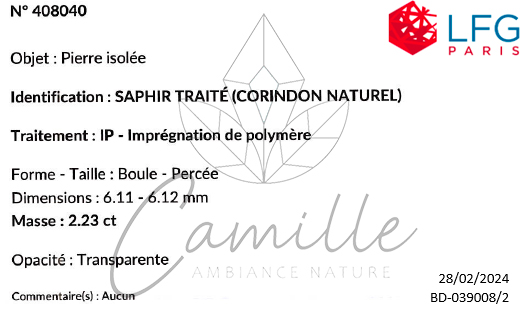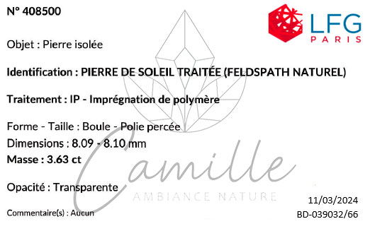 La pierre a été polie soit à l’huile ou avec de la résine afin de résorber les possibles micros-fissures de surface. C’est la raison pour laquelle il y a des résidus trouvés sur la pierre. Ceci n’altère en rien la naturalité ainsi que la qualité du produit. C’est une technique utilisée en bijouterie pour ce type de pierre.