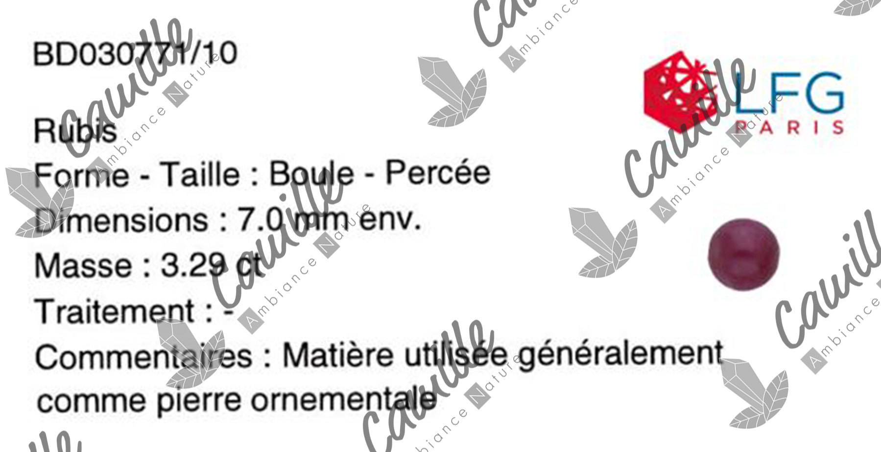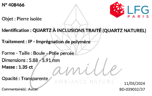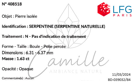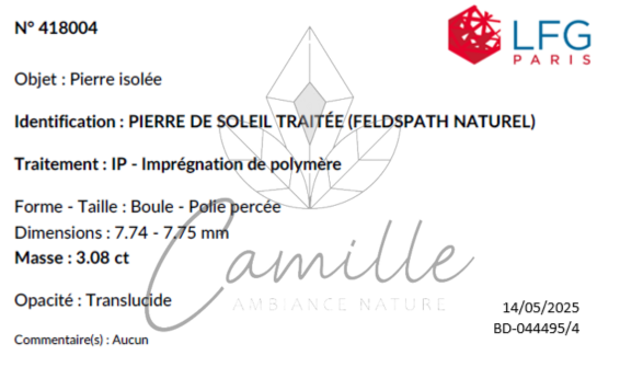 Quando riceviamo un nuovo lotto di minerali, selezioniamo uno o più campioni dall'intero lotto e li sottoponiamo alla LGF per le analisi. Abbiamo adottato questo metodo di lavoro per garantire la massima sicurezza sulla qualità e l'autenticità delle nostre pietre. Teniamo a precisare che, dati i costi delle analisi, è ovviamente impossibile far valutare ogni singola pietra o perla venduta. Tuttavia, questo metodo di valutazione ci permette di effettuare controlli regolari, il che favorisce la sincerità dei nostri fornitori e la fiducia dei nostri clienti.