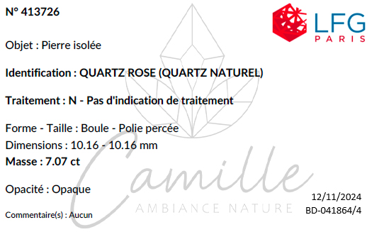 Quartz rose Madagascar A 10mm