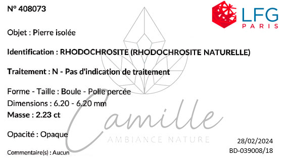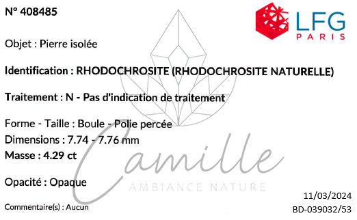 Rhodochrosite Argentine A+ 06mm